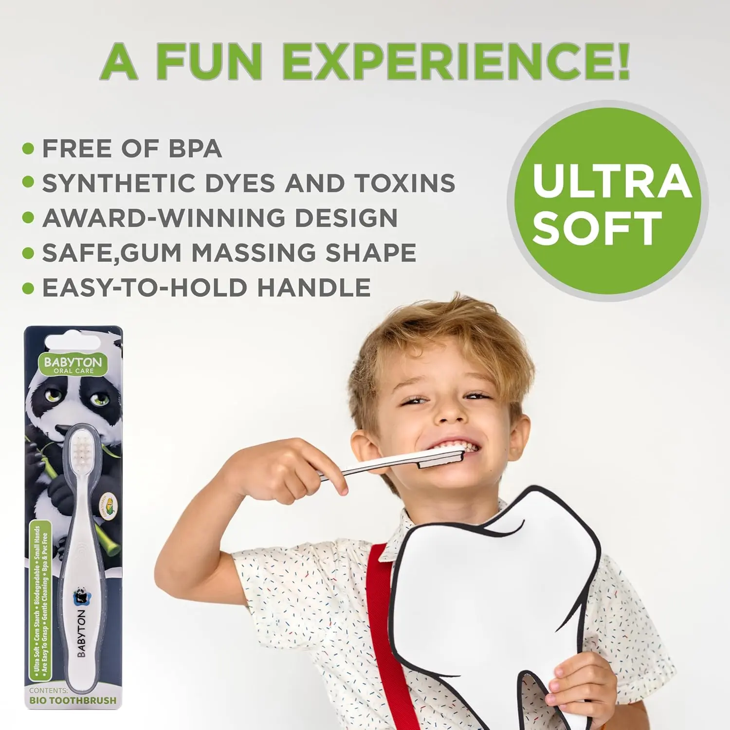 (•) Organic Oral Care: Safe and natural brushing experience.