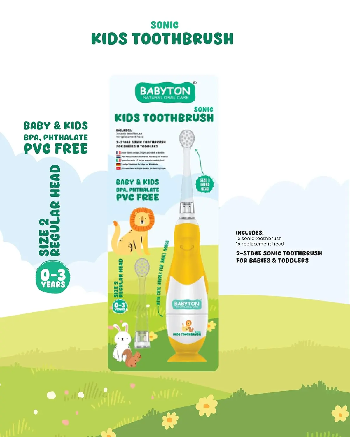 Introduce your little one to the world of healthy oral hygiene with our innovative Baby Toothbrush! Designed with the utmost care and safety in mind, this electric toddler toothbrush makes brushing a fun and engaging experience for babies aged 0-3 years. The ultra-soft bristles gently clean delicate gums and emerging teeth, while the food-grade silicone handle provides a comfortable and secure grip for both parents and little hands. With its BPA-free and PVC-free construction, you can rest assured knowing your child is using a safe and non-toxic product. Our toothbrush incorporates dentist-recommended features, including a built-in 2-minute auto timer with 30-second interval alerts, to help establish healthy brushing habits from an early age. The fun LED light illuminates the mouth for better visibility, while the soft sonic vibrations gently massage gums and provide soothing relief during teething. The ergonomic design of the lightweight silicone handle is perfectly sized for small hands, encouraging independent brushing and fostering a sense of accomplishment. This toothbrush comes with two brush head sizes, catering to different stages of dental development (0-18 months and 18-36 months). Please note that this toothbrush is specifically designed for battery-powered operation. Make oral care a positive and enjoyable experience for your baby with our safe, effective, and fun Baby Toothbrush!