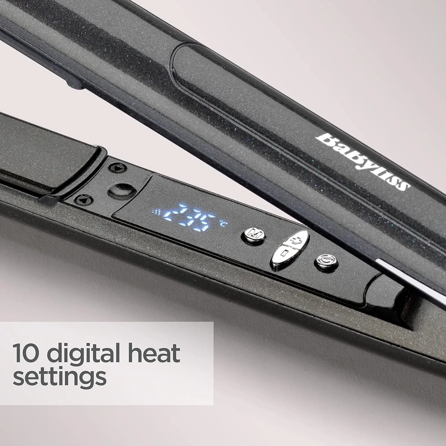 Achieve salon-worthy results in the comfort of your own home with the BaByliss BABST259SDE Platinum Diamond Infused Hair Straightener. This advanced hair styling tool combines cutting-edge technology with luxurious design to deliver unparalleled smoothness, rapid heating, and lasting shine. The secret lies in its diamond-infused ceramic plates, which glide effortlessly through your hair, distributing heat evenly and minimizing friction. Say goodbye to snagging and pulling, and hello to sleek, straight styles that last all day long. With 10 adjustable heat settings, ranging up to 235°C, you can customize the temperature to suit your specific hair type and styling needs. Whether you have fine, delicate hair or thick, coarse locks, this straightener offers the perfect level of heat to achieve optimal results without causing damage. The built-in ionic technology further enhances the styling experience by releasing negative ions that neutralize positive charges in the hair. This helps to eliminate frizz, reduce static, and leave your hair looking smooth, shiny, and impeccably sleek. For added safety and peace of mind, the straightener features an auto shut-off function that automatically turns the device off after a period of inactivity, preventing overheating accidents. Experience the difference that diamond-infused technology can make and unlock your hair’s true potential with the BaByliss Platinum Diamond Infused Hair Straightener. It is the ultimate tool for achieving professional-quality results at home.