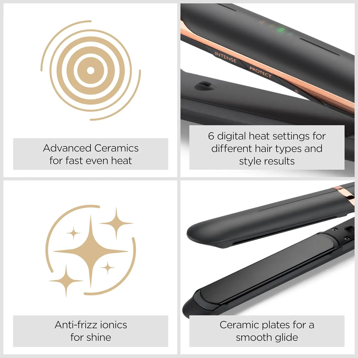 • Ionic frizz-control for sleek results