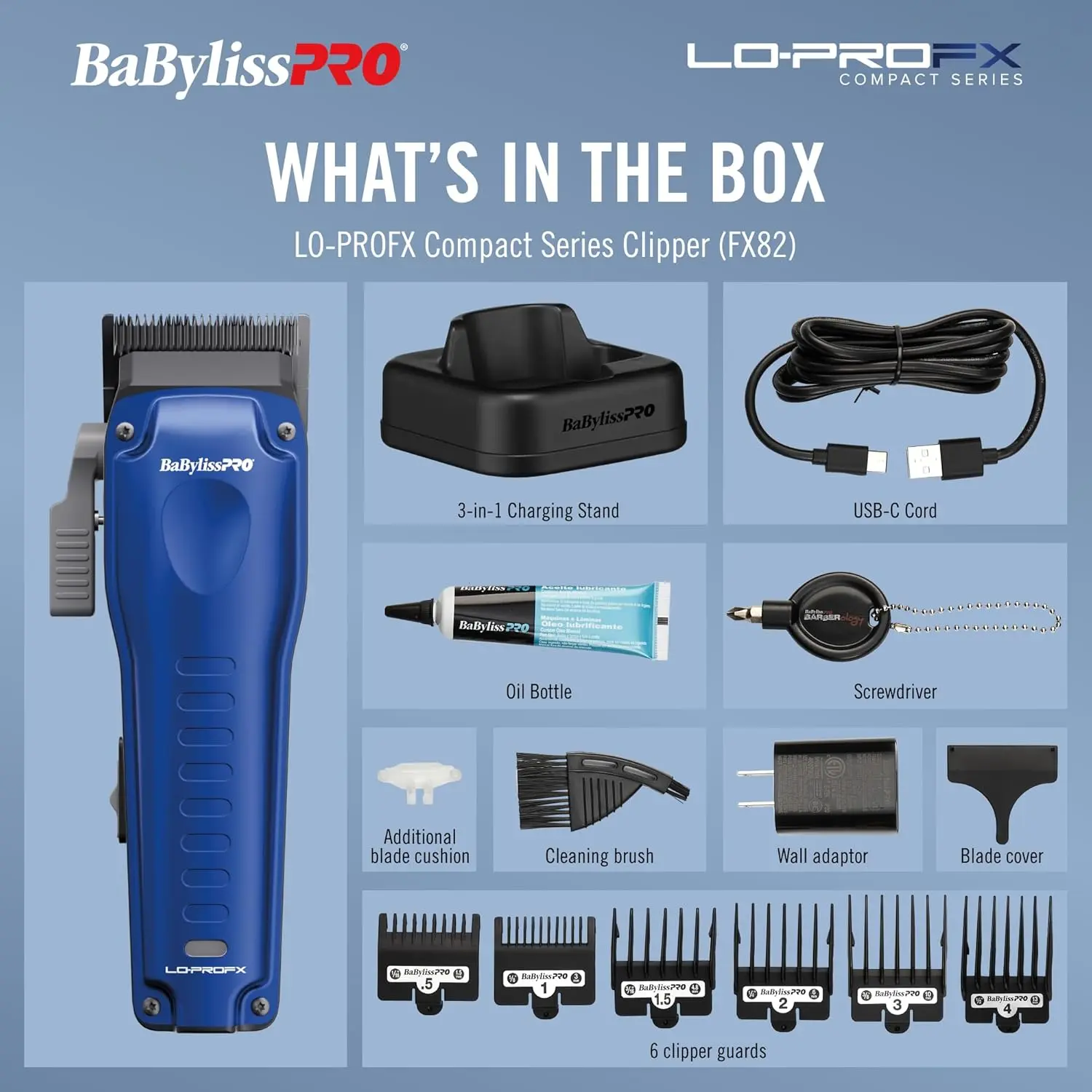 The BaBylissPRO LO-PROFX Compact Clipper delivers pro power in a smaller, lighter design. Featuring a MIM fade blade, 2.5-hour runtime, USB-C charging, and all-metal housing.