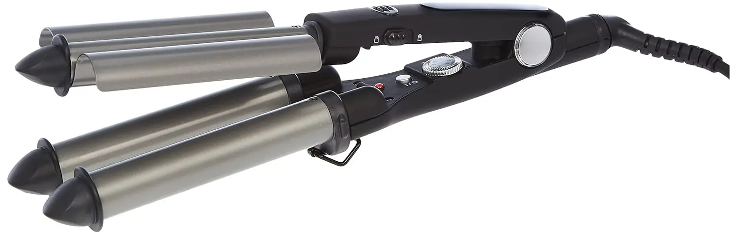Achieve stunning, glamorous waves effortlessly with the BaBylissPRO Waver. The secret lies in its innovative Titanium-Tourmaline coating on the heating barrels, ensuring even heat distribution and optimum heat stability for consistently flawless results. This triple barrel waver, with barrel sizes of 22mm, 19mm, and 22mm, creates beautiful, natural-looking waves that are perfect for any occasion. Whether you’re aiming for beachy texture or red-carpet glamour, this waver delivers professional-quality results in the comfort of your own home. The temperature selector offers five settings ranging from 140°C to 220°C, allowing you to customize the heat to suit your hair type and desired style. Safety and convenience are paramount, featuring an on/off switch (0/I), a velvet-coated handle for a comfortable grip, a built-in metal stand for safe placement during use, stay-cool tips to prevent burns, and a swivel cord for tangle-free styling. Operating at 110W – 230V, this waver is designed for worldwide use. Elevate your hairstyling routine and unleash your inner stylist with the BaBylissPRO Waver. Get ready to turn heads with your gorgeous, glamorous waves. Enjoy the ease and reliability of professional styling at home.