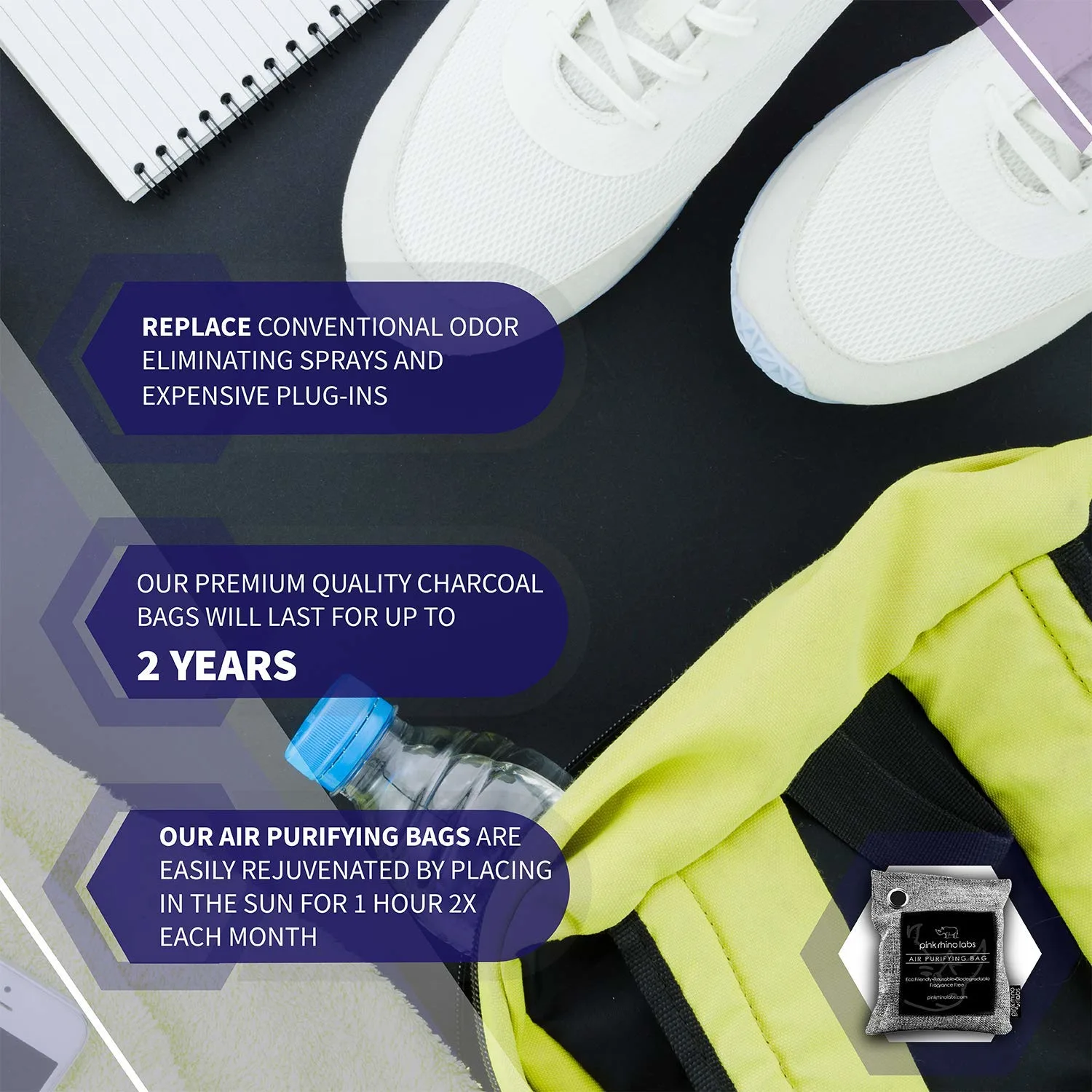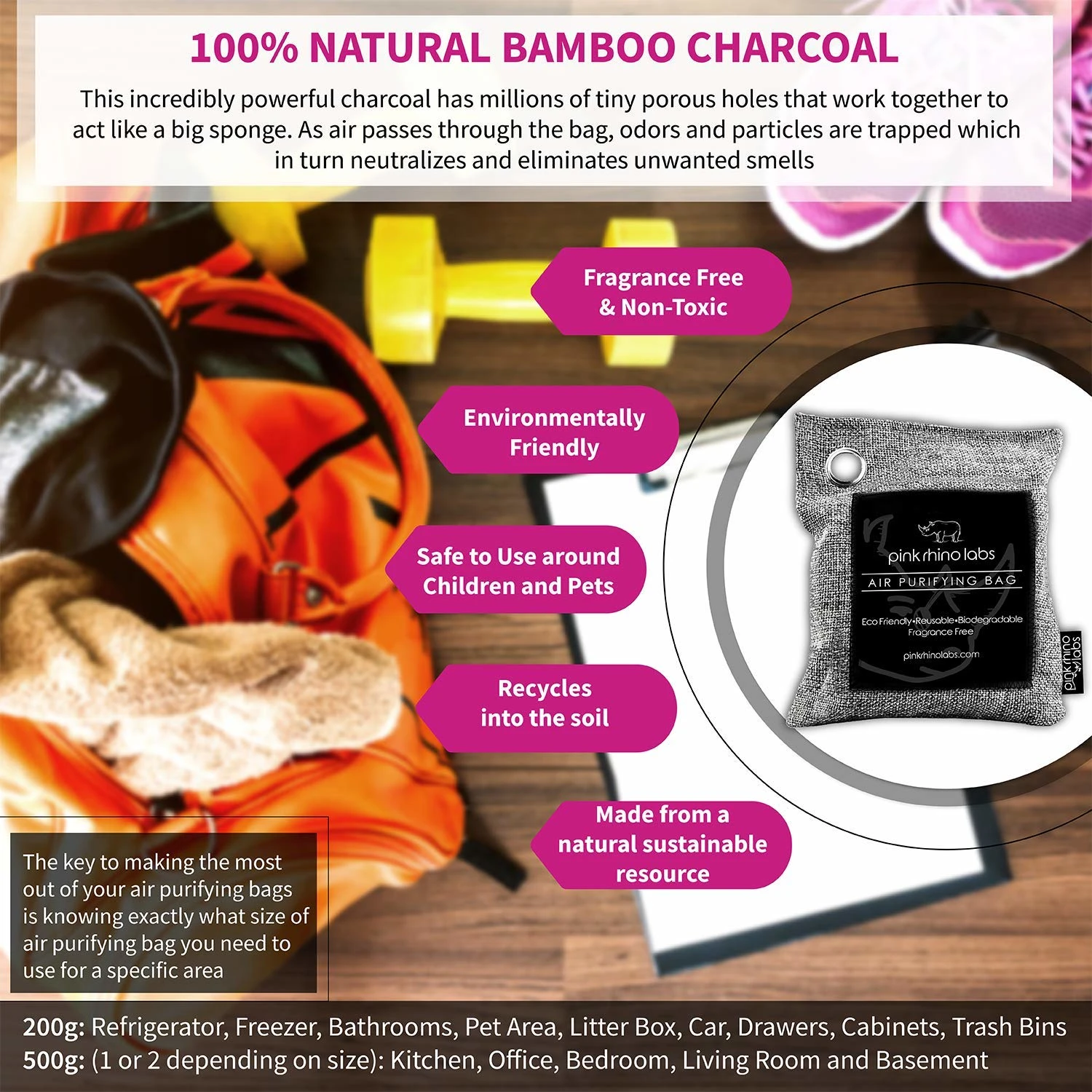 Breathe easier and enjoy a fresher, cleaner environment with the Bamboo Charcoal Air Purifier Odor Eliminator from PINK RHINO LABS. This innovative air purifying solution utilizes the natural power of activated bamboo charcoal to effectively absorb and neutralize odors, allergens, and pollutants, leaving your home, car, or office smelling fresh and revitalized. Unlike traditional air fresheners that simply mask odors with artificial fragrances, our bamboo charcoal bags work by trapping and eliminating the source of the problem. The highly porous structure of activated bamboo charcoal acts like a sponge, drawing in unwanted particles and moisture from the air. This helps to reduce mold, mildew, and bacteria growth, contributing to a healthier living space for you and your family.