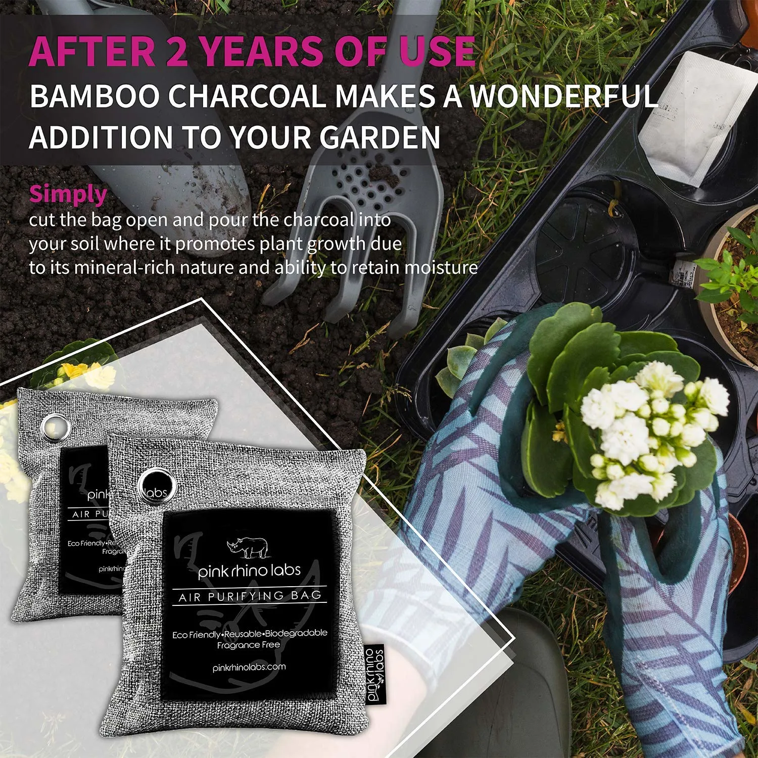 • Versatile forms: air purifying bags, granules, and spray.