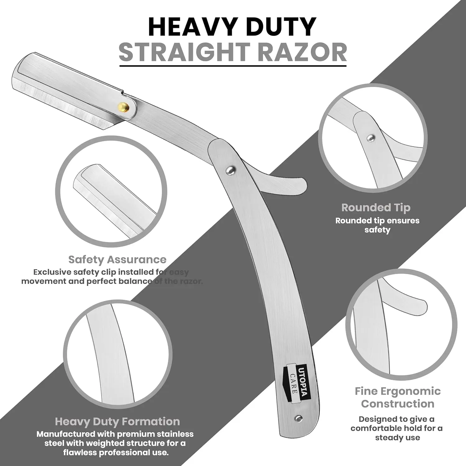 Looking for the perfect Valentine’s Day gift for him or her? The Utopia Care Barber Straight Razor Kit is the ultimate grooming essential, combining classic style with modern durability. Crafted from premium stainless steel, this razor is built to last, providing a reliable and consistent shaving experience for both professional barbers and home users alike. Its matte finish not only enhances its sophisticated look but also optimizes its longevity. The ergonomic design ensures a comfortable grip, allowing for easy maneuvering and a close, smooth shave. The flip-able blade cover adds to the convenience, making blade changes quick and easy. For safe use, always ensure the blade is securely locked within the safety walls and the cap is in place. Gentle pressure on the protection cap before closing ensures a tight grip. Designed for both men and women, this razor delivers the cleanest cuts, making it an essential for anyone seeking a professional-quality shave. The smooth grip allows for precise control, minimizing the risk of nicks and cuts. Whether you’re a seasoned barber or new to straight razor shaving, the Utopia Care razor offers a superior shaving experience. Gift the luxury of a perfect shave this Valentine’s Day with the Utopia Care Barber Straight Razor Kit. The brass construction with a chrome finish delivers a classic look and a reliable shave every time. Start with gentle strokes and slowly work your way around to keep a steady motion and pressure.