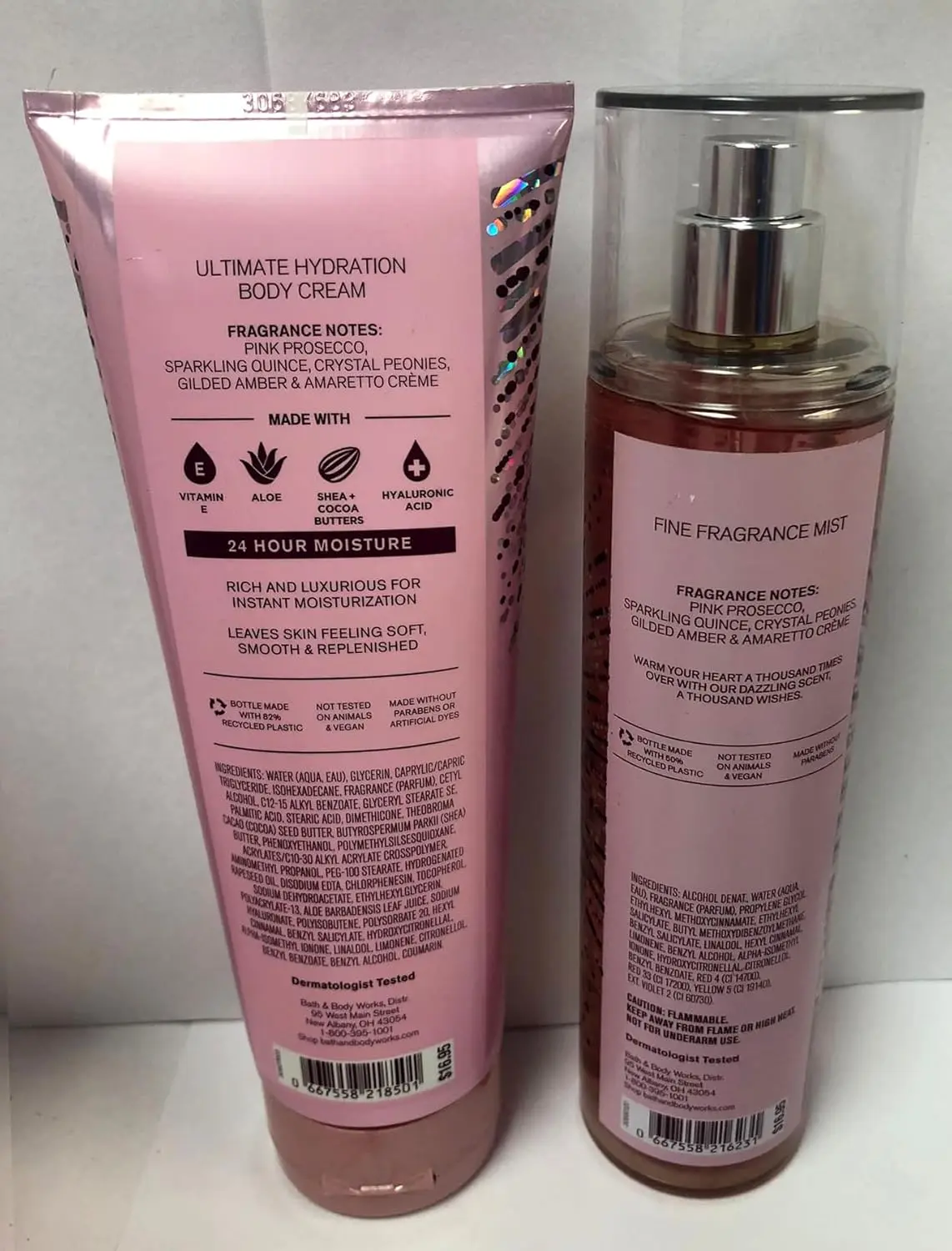 Indulge in the captivating allure of Bath & Body Works A Thousand Wishes Gift Set. This delightful duo includes a Fine Fragrance Mist (8 fl oz / 236 mL) and an Ultimate Hydration Body Cream (8 oz / 226 g), both infused with the enchanting scent of A Thousand Wishes. Imagine a sweet, heart-warming celebration bottled into a fragrance. A Thousand Wishes delivers just that, unfolding with notes of pink prosecco that sparkle and dance, followed by the crisp sweetness of sparkling quince. The heart of the fragrance blooms with crystal peonies, adding a touch of delicate floral elegance. The base is a warm and inviting blend of gilded amber and amaretto crème, creating a luxurious and comforting finish. Spritz the Fine Fragrance Mist for a burst of instant fragrance, or envelop your skin in the rich hydration of the Ultimate Hydration Body Cream for long-lasting scent and moisturization. A Thousand Wishes is the perfect gift for yourself or someone special, bringing a touch of celebration to everyday moments.