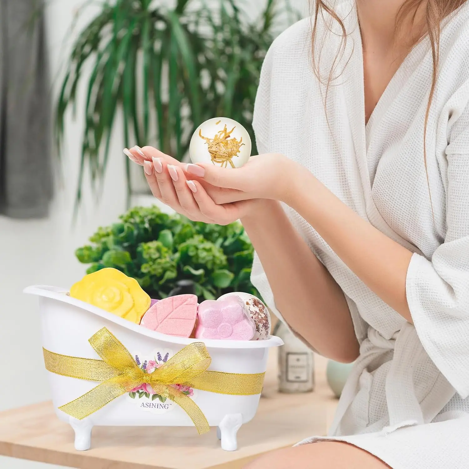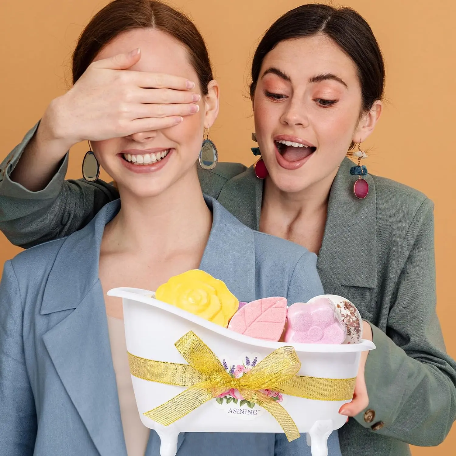 Indulge in a luxurious and colorful bathing experience with our exquisite Bath Bombs Gift Set for Women. This set features a delightful assortment of bath bombs, each infused with unique and captivating scents like soothing lavender, romantic rose, and invigorating lemon. Watch as these bath bombs dissolve in your tub, releasing a mesmerizing display of vibrant colors that transform your ordinary bath into a dreamy oasis. More than just a visual treat, these bath bombs are formulated to provide deep relaxation and nourishment for your skin. Enriched with natural essential oils and carefully selected plant ingredients, they effectively soothe tired muscles, deeply moisturize the skin, and combat dryness and roughness. After your bath, your skin will feel noticeably smoother, softer, and more tender. Our bath bombs are crafted with your well-being in mind. We use only high-quality raw materials, adhering to strict safety standards to ensure a worry-free experience. No harmful chemicals are added, making them gentle enough for even those with sensitive skin. Whether you’re seeking a moment of tranquility after a long day, planning a relaxing weekend soak, or setting the mood for a romantic evening, these bath bombs are the perfect addition to any bathing ritual. Presented in an elegant gift box, our Bath Bombs Gift Set is ready to impress. No additional wrapping is needed, making it an ideal present for relatives, lovers, and elders on special occasions such as birthdays, Valentine’s Day, Mother’s Day, and other holidays. Show your warmth and care with this thoughtful and pampering gift. Give the gift of relaxation and rejuvenation with our Bath Bombs Gift Set, and let your loved ones experience the ultimate in bathing bliss. Our unique blend of scents and colors will leave you feeling refreshed and revitalized, turning your everyday bath into a spa-like escape.