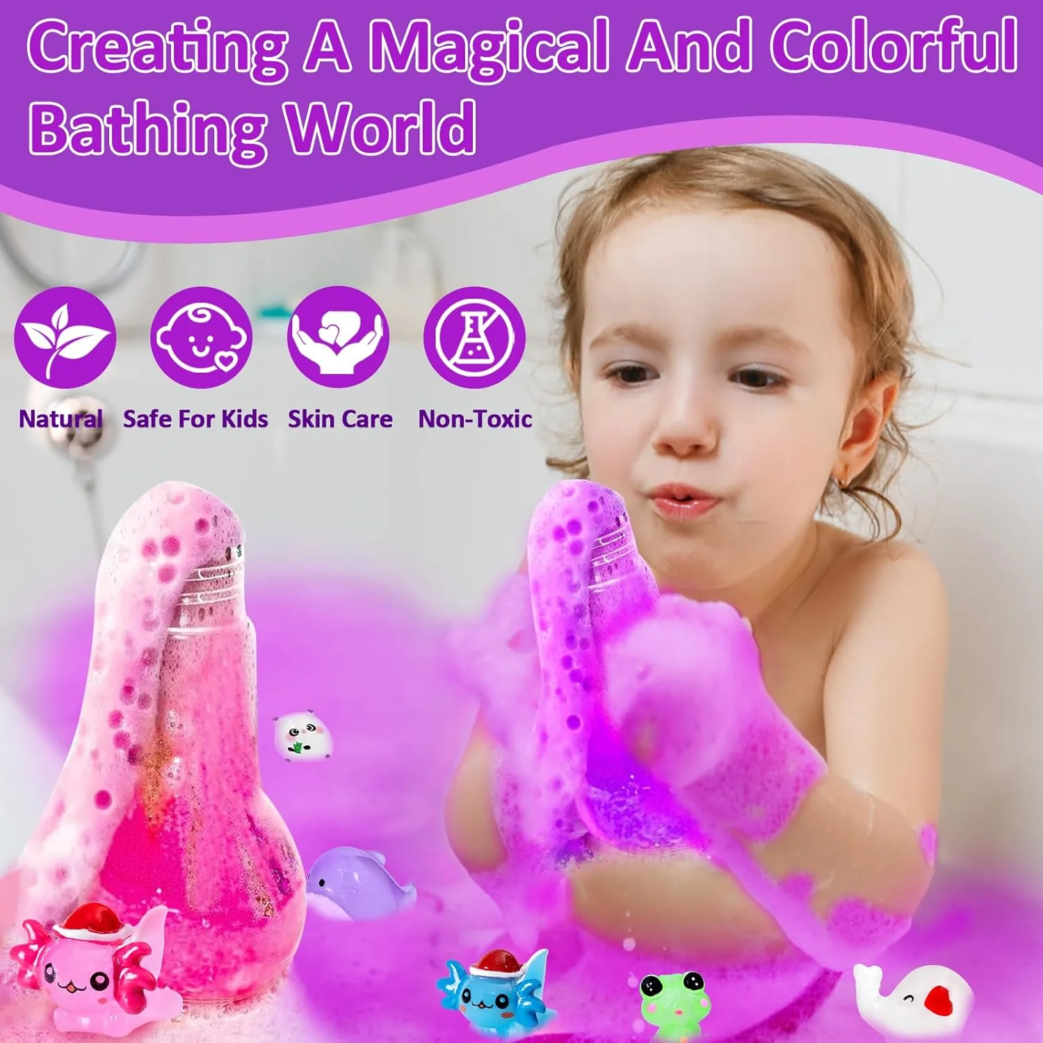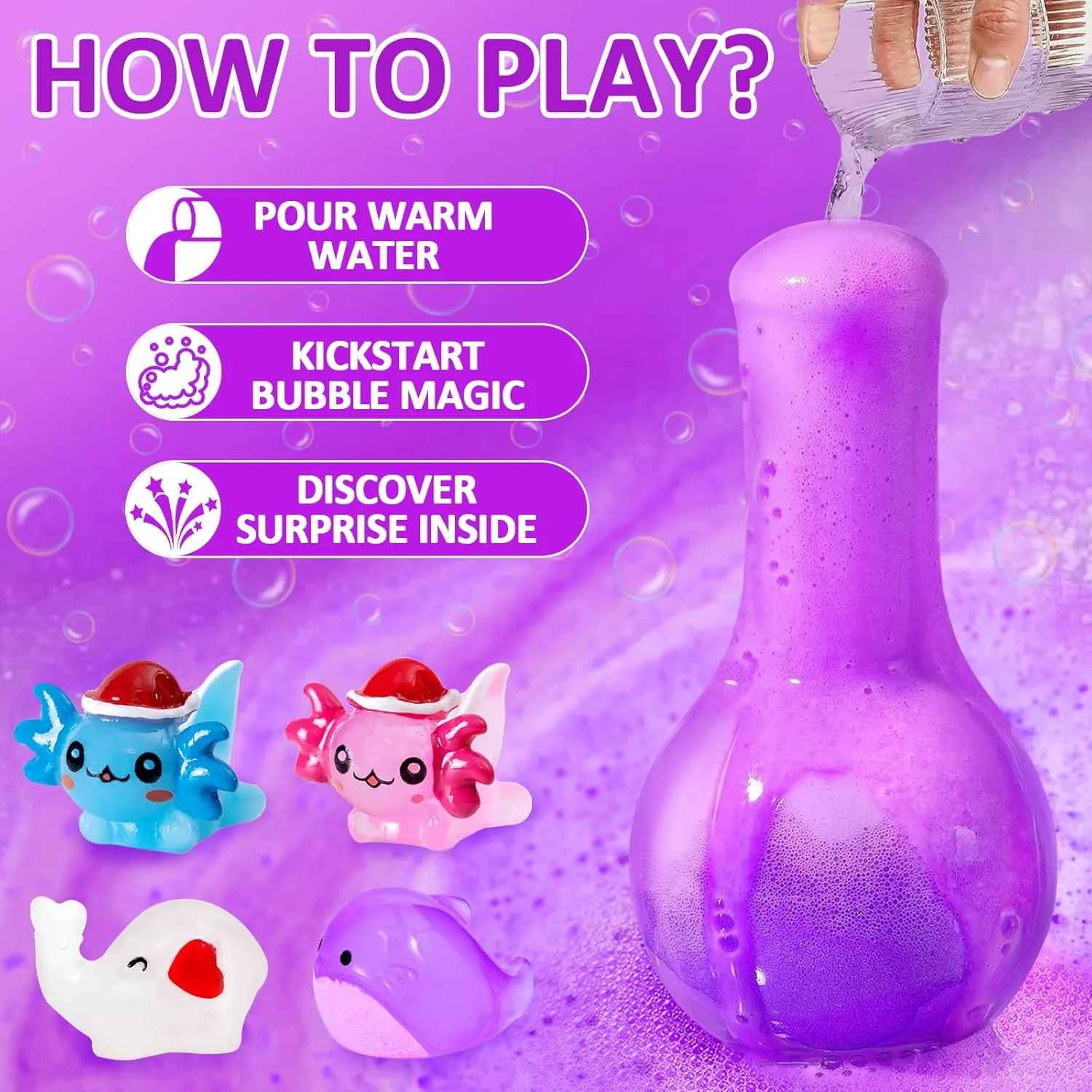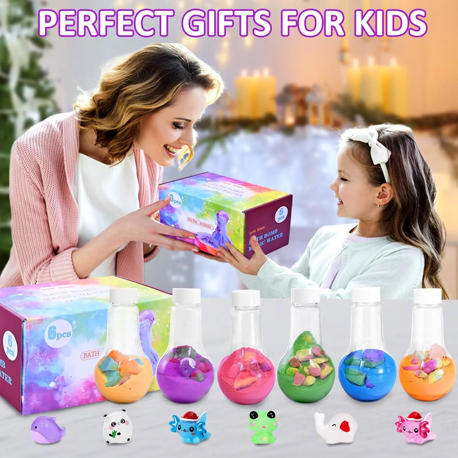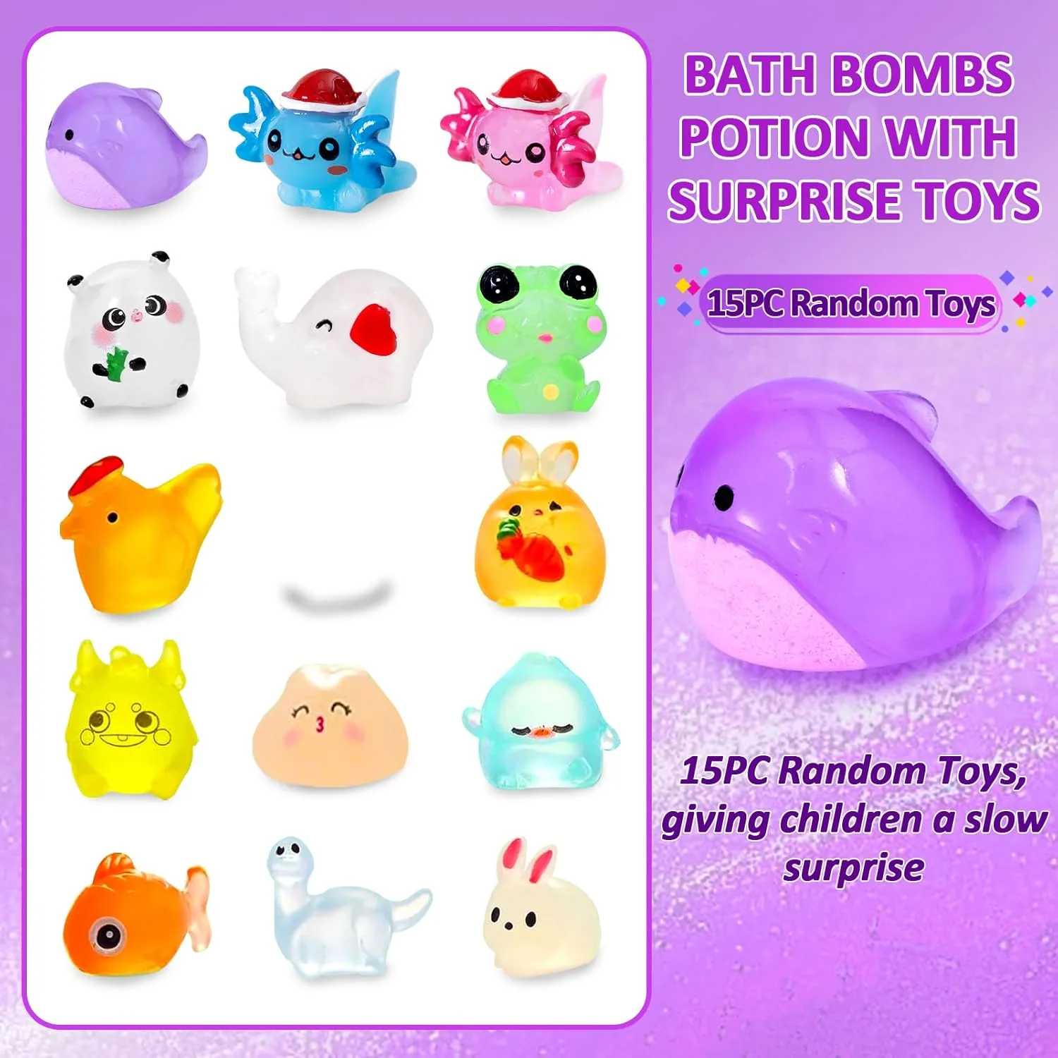Our Bath Bombs with Surprise Toys are the ideal gift for any occasion. Just have a fun Bubble Bath! The bath bombs for kids with surprise inside can ensure the best fizz effect shows your little ones a science experiment in the water! Amazing bubble visual impression and crazy fizz in the water can stimulate kids’ senses. Each set comes in a surprise packaging with toddler toys, making it a perfect gift for Christmas, Easter, birthdays, or any special occasion. Give the gift of fun, relaxation, and learning with our exquisite bath bomb gift set!