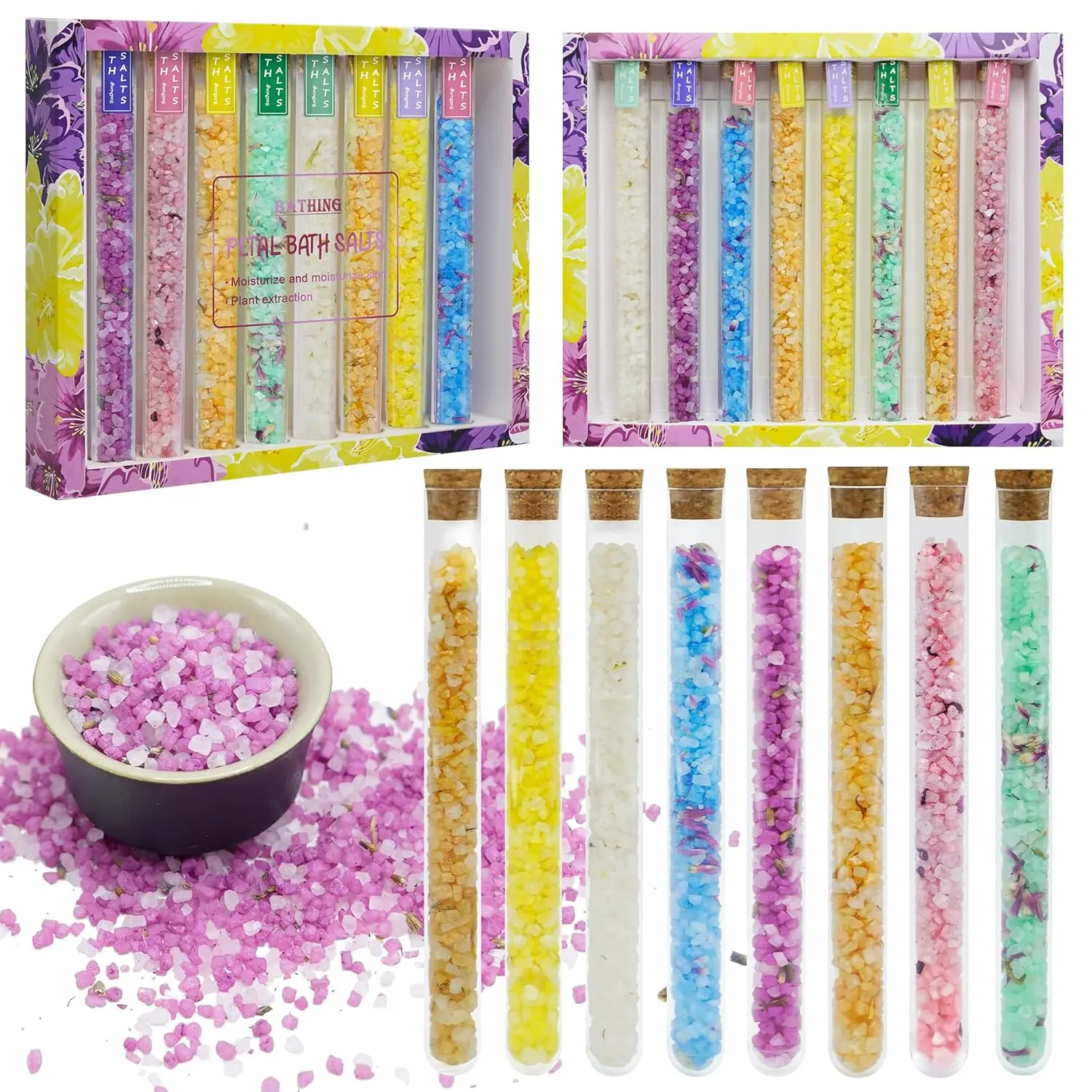 • Set includes: 8 tubes of bath salts