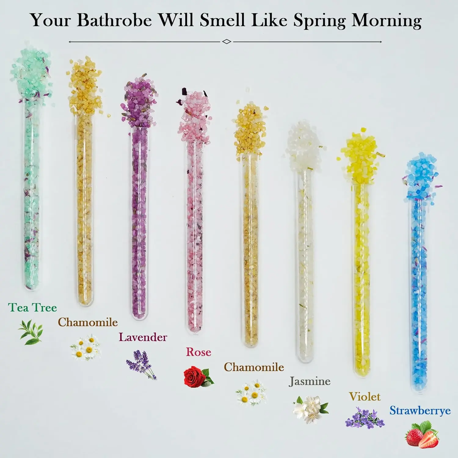 • Includes 8 individual 1oz tubes of bath salts.