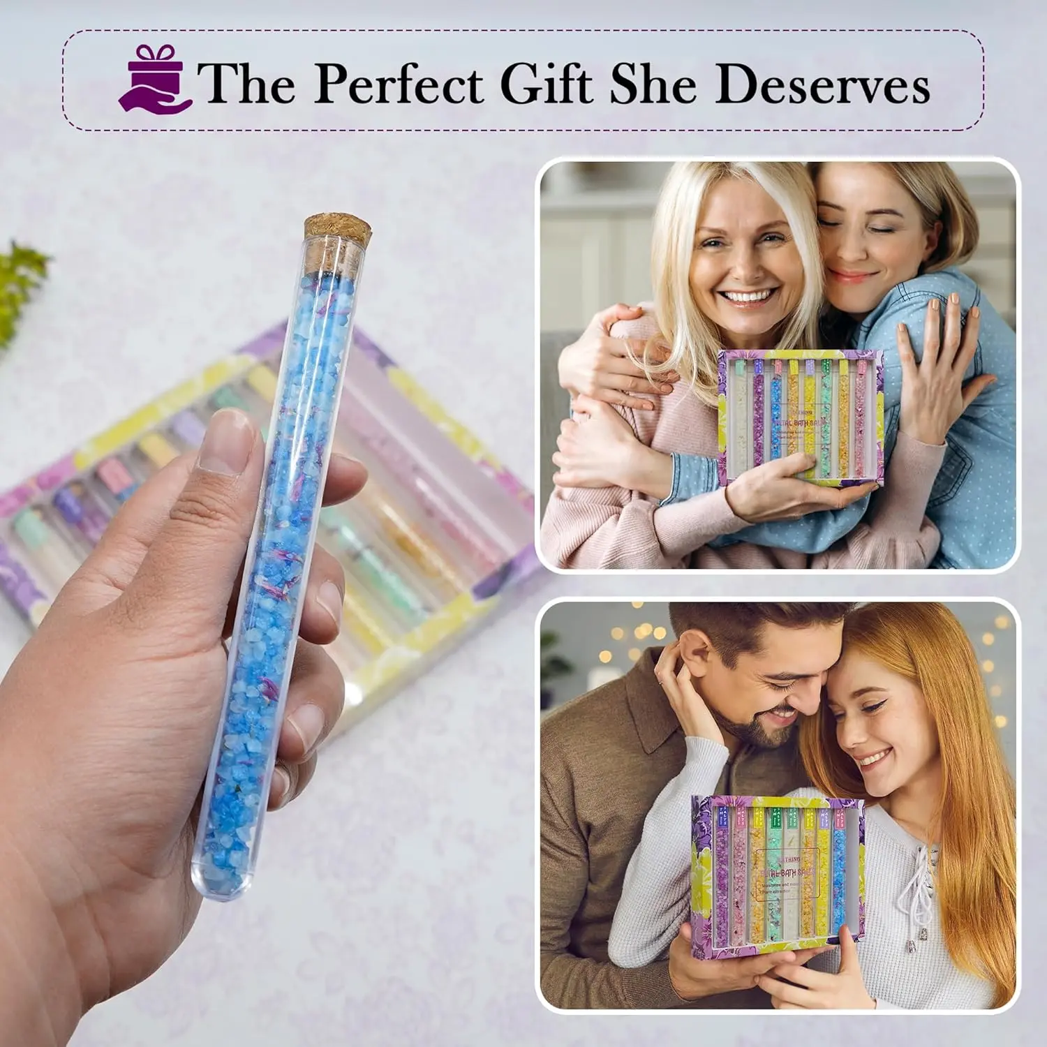 Transform your bath into a relaxing aromatherapy experience with this bath salts set! Includes 8 fragrant tubes in a beautiful gift box. Perfect for stress relief and self-care.
