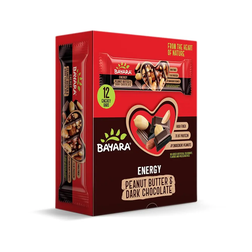 Fuel your day with the Bayara Peanut Butter & Dark Chocolate Energy Bars! This pack of 12 delicious and nutritious bars is the perfect on-the-go snack for anyone needing a boost. Made with wholesome ingredients including almonds, these bars are packed with 7 grams of protein to help keep you feeling full and satisfied. Plus, they’re rich in fiber, promoting healthy digestion. These energy bars are made right here in the UAE and are guaranteed to give you the extra energy you need to power through your busy schedule, whether you’re hitting the gym, tackling a project at work, or simply need a pick-me-up during the afternoon slump. Bayara believes in providing you with the best possible ingredients, which is why these bars contain no added artificial colorants, flavors, or preservatives. You can feel good about what you’re putting into your body. With the irresistible combination of peanut butter and dark chocolate, these bars are a treat you can enjoy guilt-free. Stock up today and experience the Bayara difference! These bars offer a perfect blend of taste and nutrition, making them an ideal choice for those seeking a healthy and convenient snack option. The combination of protein and fiber helps to sustain energy levels, preventing those mid-day crashes. They are carefully crafted to provide a balanced and satisfying snack that supports your active lifestyle. Bayara is committed to quality and freshness, ensuring that each bar delivers a burst of flavor and energy.