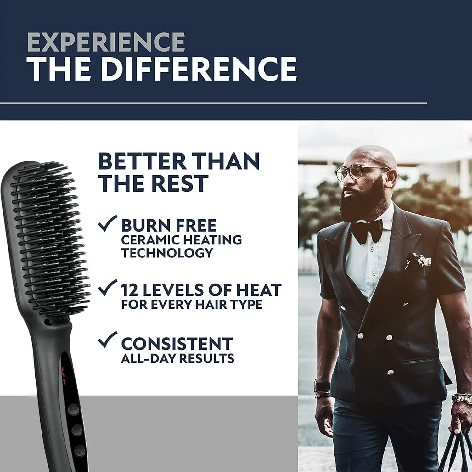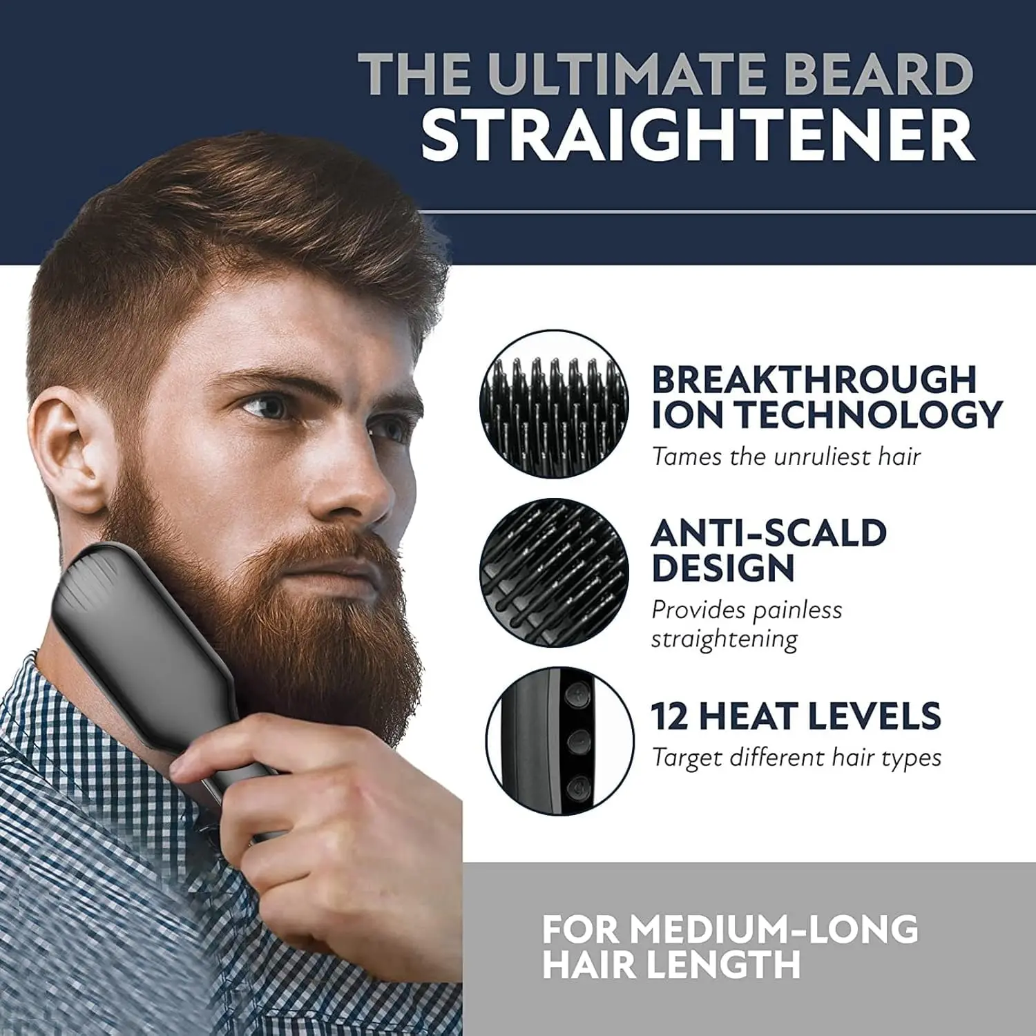 Our Beard Straightener Brush utilizes unique PTC heating technology to maintain a consistent and optimal heat level throughout the straightening process. This ensures maximum straightening power with every stroke, providing fast and efficient results. The advanced ionic conditioning, combined with an anti-static coating, allows the brush to glide effortlessly through your facial hair, minimizing snagging and frizz. Enjoy a smooth, straightened beard that lasts.