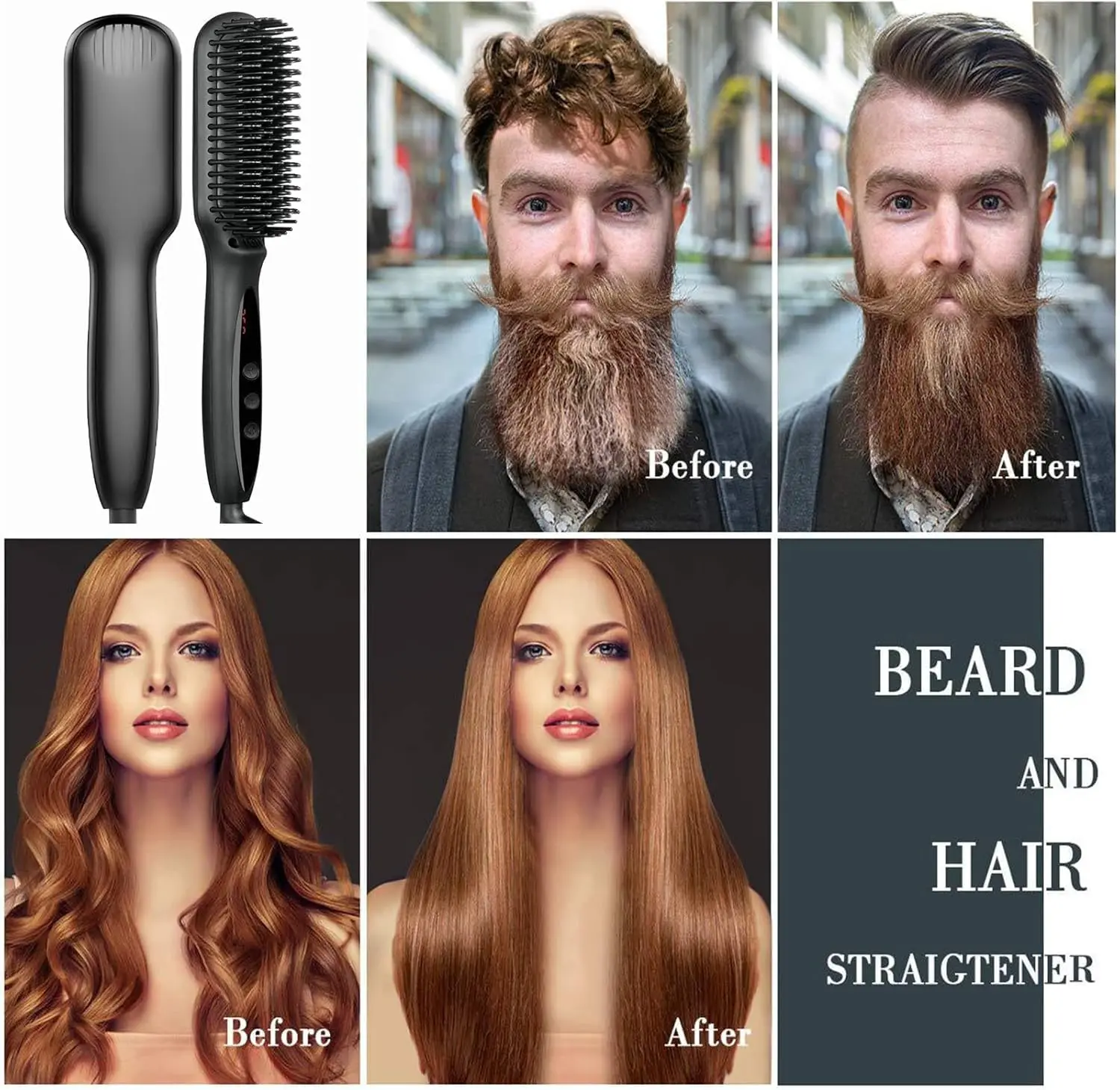 Tame your beard with ease using our Beard Straightener Brush for Men! This innovative tool is specifically designed for facial hair, delivering straight, smooth results in just one pass. Unlike traditional hair straighteners, our brush is crafted to avoid damaging your beard or burning your face. It’s also suitable for head hair for both men and women, offering versatile styling options. Featuring 12 adjustable temperature settings, ranging from 120°C (250°F) to 230°C (450℉), this straightening brush caters to various hair types, whether curly, short, long, or a full man beard. Say goodbye to messy, unruly facial hair and hello to a perfectly groomed look.