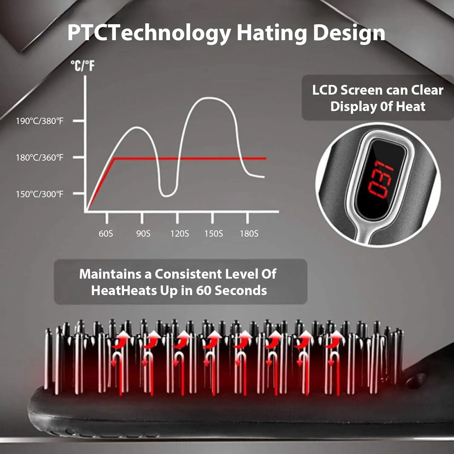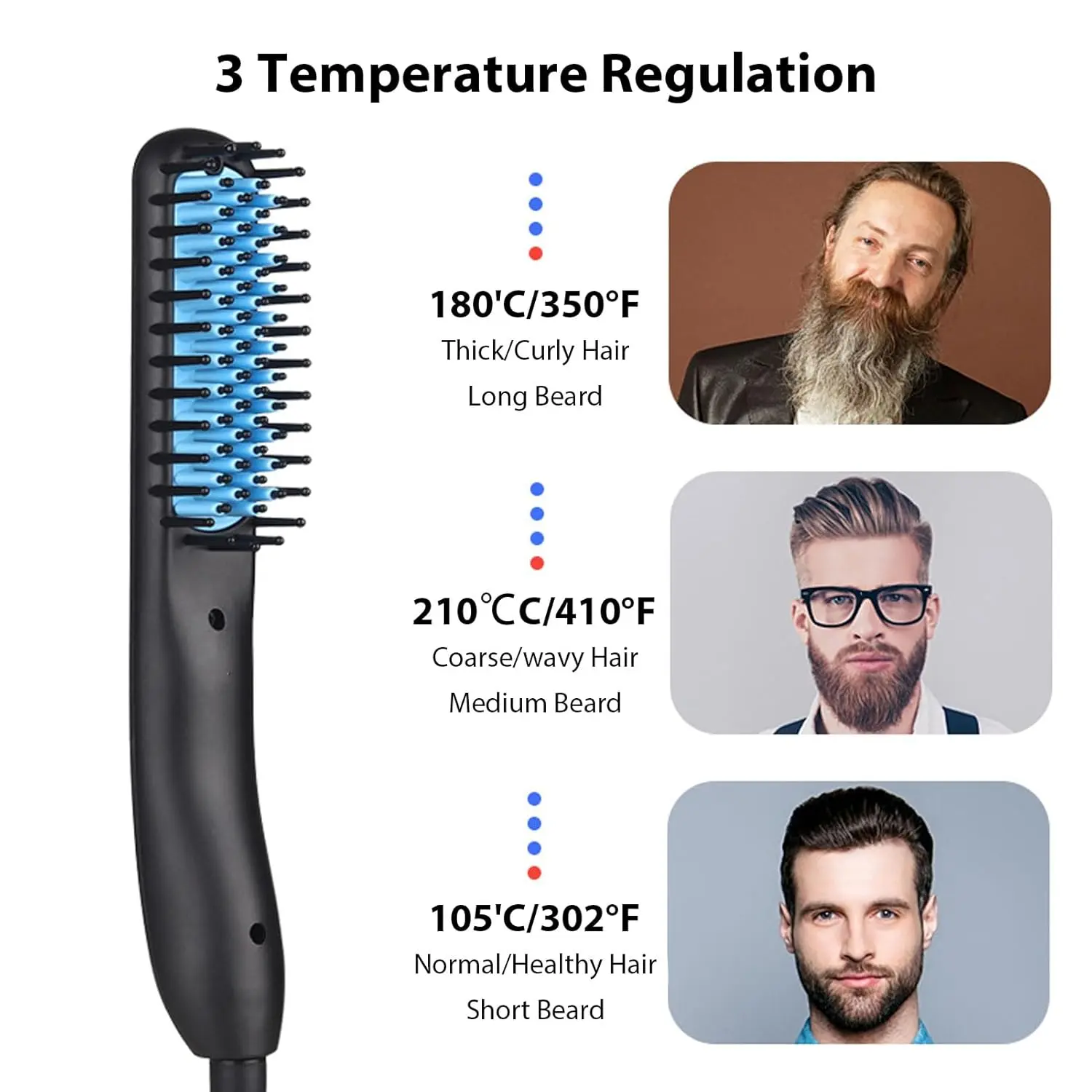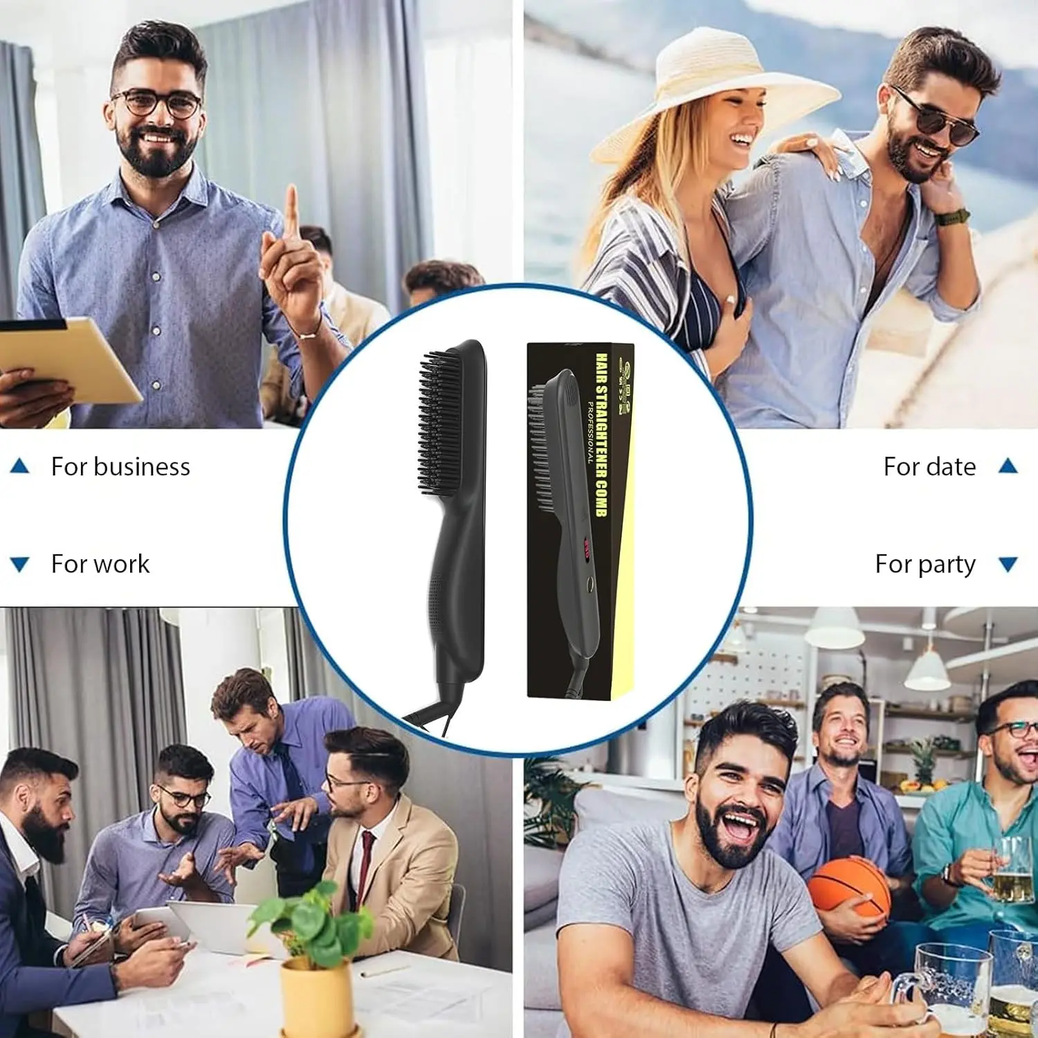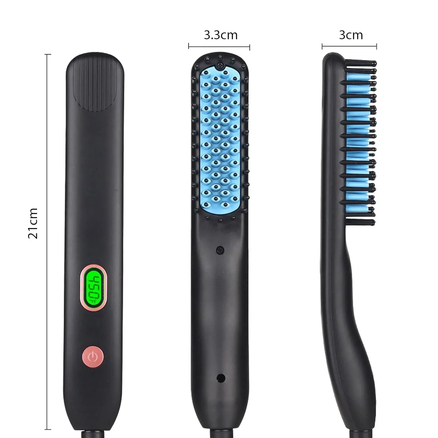 Achieve a perfectly groomed beard with the Beard Straightener Comb for Men! This innovative heated brush utilizes advanced PTC technology to ensure consistent and even heat distribution, effortlessly straightening your beard for a smooth and polished look. No more uneven patches or frustrating frizz! The brush heats quickly and glides smoothly through your beard, making styling a breeze. With six adjustable temperature settings, ranging from 350℉ to 450℉, you can customize the heat to suit your beard’s thickness and texture. The user-friendly one-button design allows for simple and smart operation – just press the power button to cycle through the temperatures in 20℉ increments. Designed with comfort in mind, the ergonomic handle fits perfectly in men’s palms, providing a comfortable grip for extended styling sessions. The long-lasting styling effect of this heated brush ensures your beard stays tidy and straight throughout the day, giving you a confident and well-groomed appearance. Not only does this beard straightening brush deliver exceptional performance, but it also makes a fantastic gift for the men in your life. Whether it’s a birthday, anniversary, Valentine’s Day, or Christmas, this lightweight and portable beard comb is a thoughtful and practical present. Its compact design makes it ideal for travel, ensuring you can maintain a perfectly styled beard wherever you go. This Heated Brush will easily Straighten and brush your beard in one step, keeping your beard looking tidy and straight the entire day! Give the gift of style and confidence with this essential grooming tool.