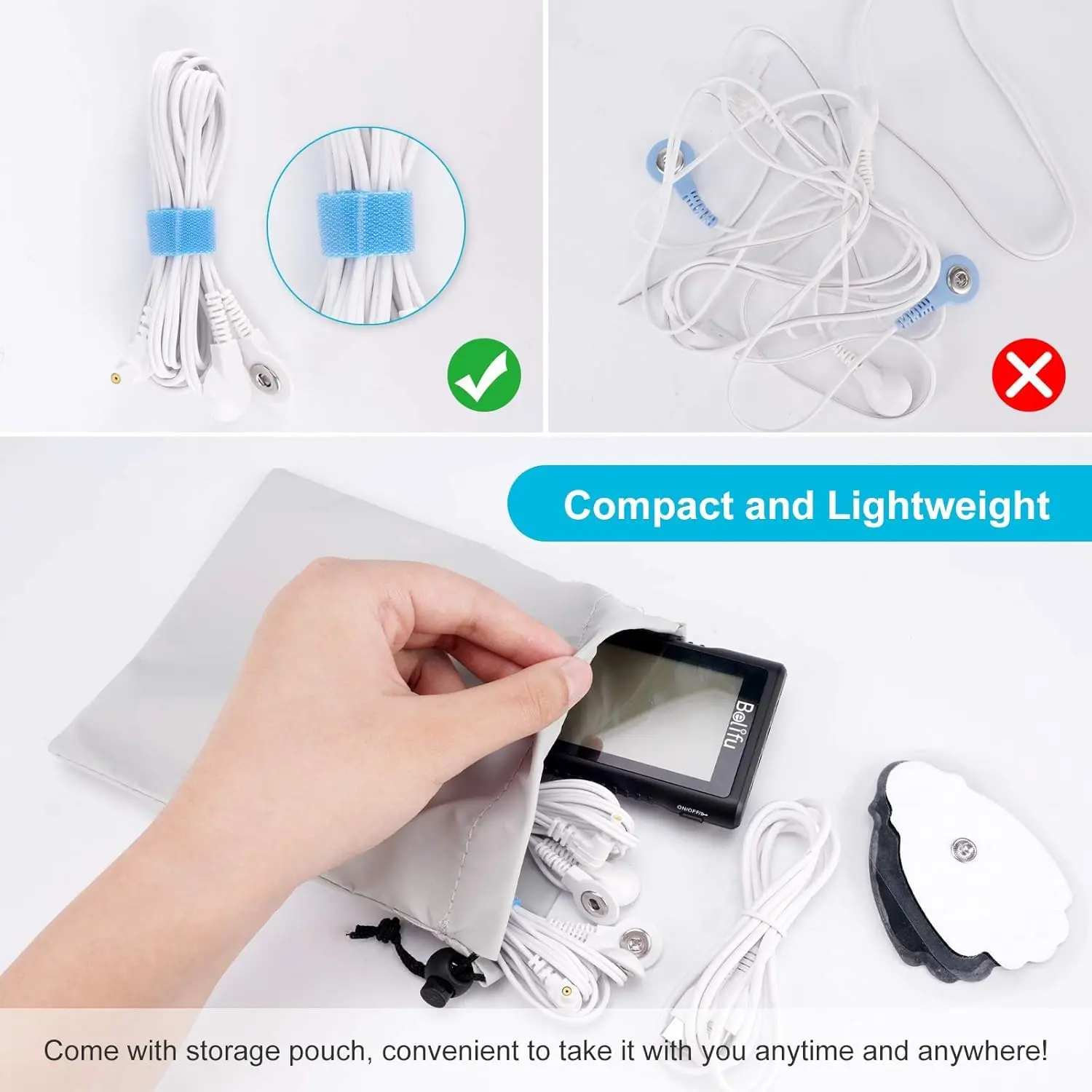 Experience powerful pain relief with the Belifu TENS Unit Muscle Stimulator. This advanced device offers fully isolated dual channels, allowing you to target two different areas of pain simultaneously with independent settings. Featuring 24 preprogrammed massage modes and 30 intensity levels, you can customize your treatment for optimal comfort and effectiveness. Whether you’re battling arthritis, period pain, knee pain, neck pain, back pain, or sports injuries, this multi-functional TENS massager provides a non-invasive, drug-free solution for managing chronic and acute pain. Its human body simulation technology and microcomputer intelligent control mimic various massage methods to effectively treat back pain, arthritic or inflamed discs/joints, shoulder tension, and muscle relief. Enjoy the convenience of a built-in rechargeable lithium battery, providing up to 24 hours of continuous use. The included organizer bag, reusable fastening cable ties, and 8 self-adhesive conductive reusable pads ensure a hassle-free experience. Say goodbye to cable clutter and the need for constant battery replacements. The Belifu TENS unit is your reliable companion for effective pain management at home. The device also helps with pain relief during labor.