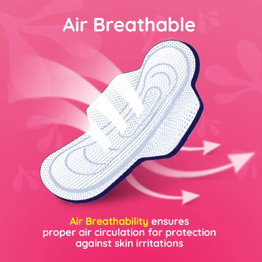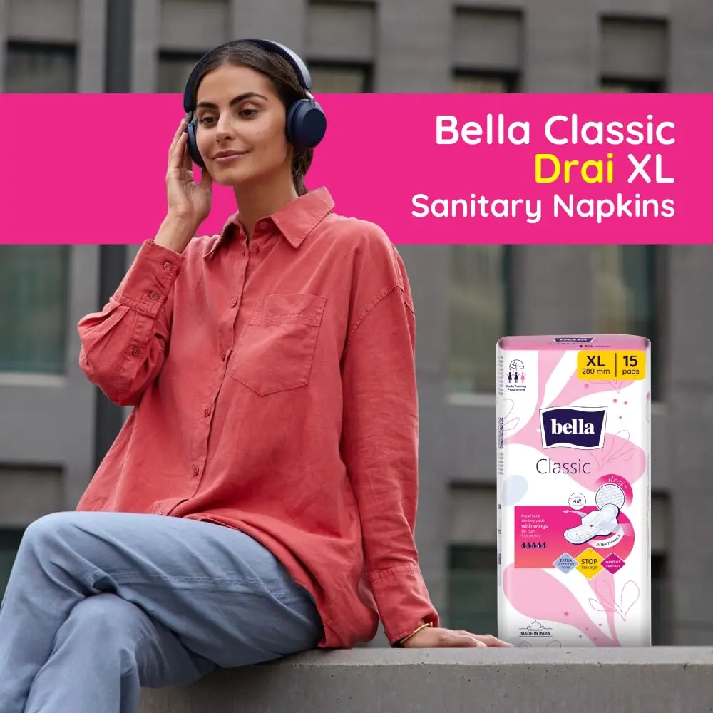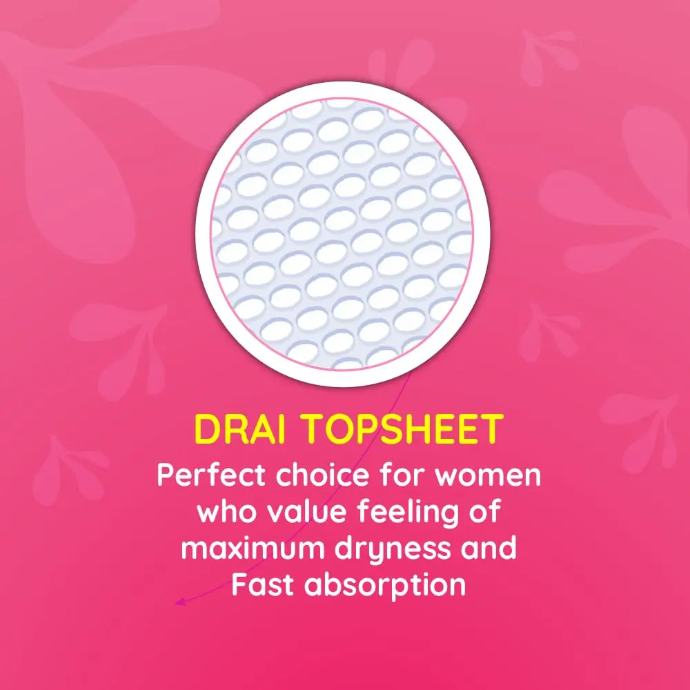 Experience all-day dryness and confidence with Bella Maxi Pads. Engineered with superior absorbency and innovative leak-proof technology, these pads provide exceptional protection and comfort during your period. The unique air breathability feature promotes optimal air circulation, minimizing skin irritation and maximizing comfort. Our innovative liquid distribution and leakage stop barriers effectively prevent side leakages, keeping you secure and worry-free. The comfort cushion, a soft absorbent center, delivers a gentle feeling against your skin and ensures rapid absorption. For enhanced protection during nighttime or heavy flow, the extra protective zone with an extended back offers additional security. The Drai special top sheet netting provides a feeling of dryness all day long. We are proud supporters of the Bella training program, an educational platform dedicated to enhancing women’s health and hygiene knowledge in India. Choose Bella Maxi Pads for reliable protection and unparalleled comfort, allowing you to live your life to the fullest, without compromise. Get the peace of mind and the superior comfort you deserve with Bella Maxi Pads. Experience the difference today!