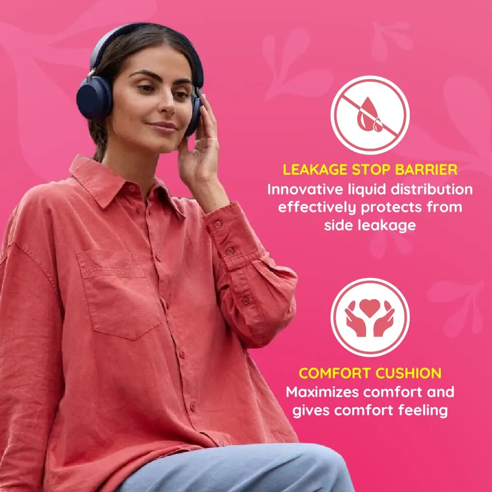 Bella Maxi Pads offer all-day dryness & leakage protection. Featuring air breathability, leakage stop barriers, a comfort cushion, and an extra protective zone for night and heavy flow.