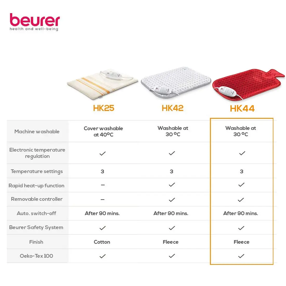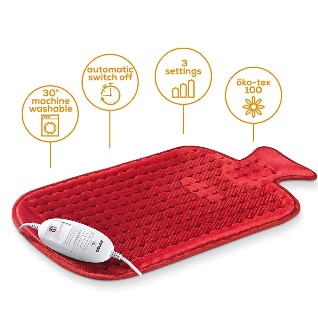 Tired of the hassle of hot water bottles? The Beurer HK44 Heat Pad offers consistent, controllable warmth without the need for boiling water. This electric heat pad provides a fuss-free way to beat the chill and stay cosy. Forget about constant refills and uneven heating – the HK44 delivers reliable warmth whenever you need it. With three electronically regulated temperature settings, you can easily adjust the heat to your preference, ensuring optimal comfort every time. The Beurer HK44 also prioritizes your safety with its automatic switch-off function after 90 minutes of use, supported by the patented Beurer Safety System. Made with super-soft, micro-fleece fibres, the HK44 is gentle on your skin and provides a breathable, cosy feel. The Oeko-tex 100 certification guarantees that the materials used are kind to your skin and free from harmful substances. Keeping your heat pad clean is easy – simply detach the power cord and temperature control, and pop it in your washing machine at 30°C. The Beurer HK44 Heat Pad offers a convenient, safe, and comfortable way to experience warmth and relaxation. Enjoy the benefits of consistent, adjustable heat with a heat pad designed for your well-being. Say goodbye to the inconvenience of traditional methods and embrace the modern comfort of the Beurer HK44. It’s the perfect companion for chilly evenings, muscle relaxation, or simply unwinding after a long day. Its easy-to-use design and machine-washable feature make it a practical and hygienic choice for anyone seeking reliable warmth. Experience the difference of a thoughtfully designed heat pad that prioritizes your comfort and safety.