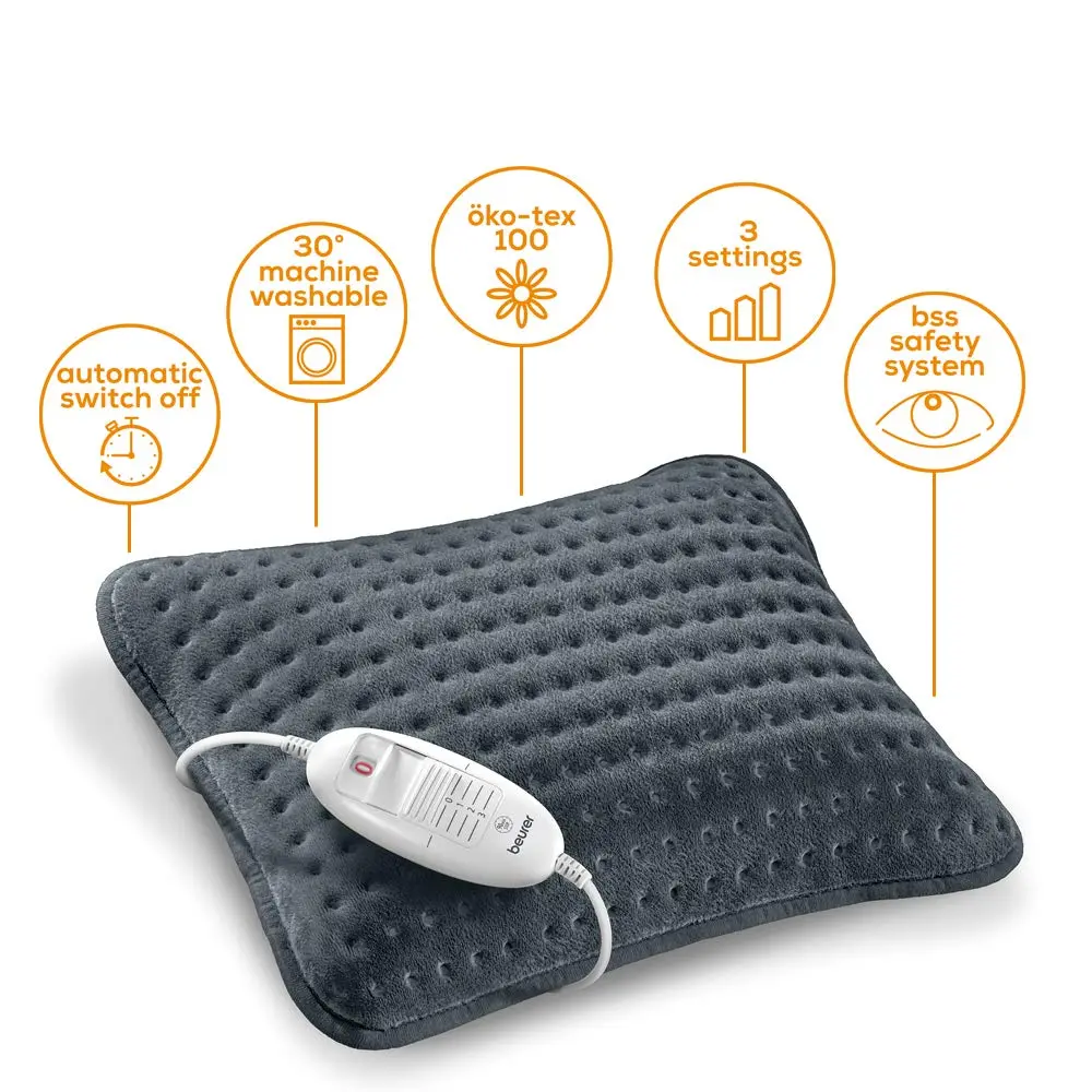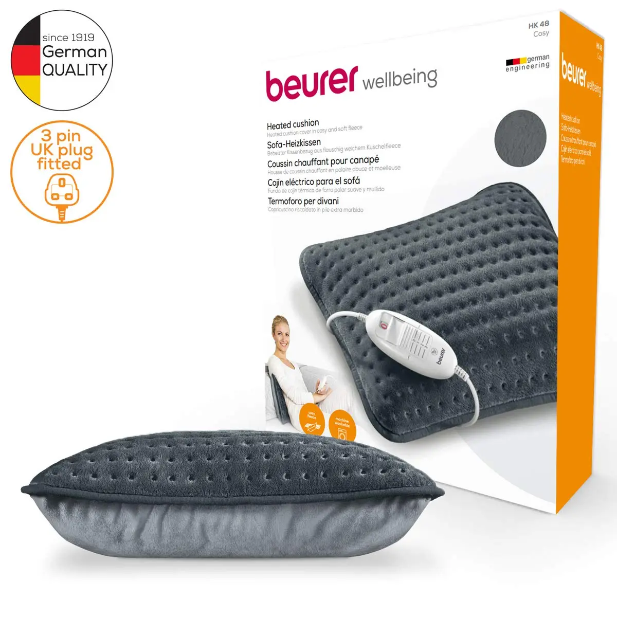 Enjoy soothing warmth and relief with the Beurer HK48 Heated Cushion. Features include 3 temperature settings, machine-washable cover, and automatic shut-off for safety and convenience.