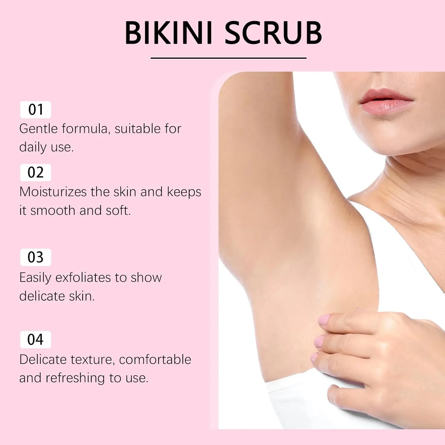 • Suitable for bikini line, inner thighs, underarms, and more