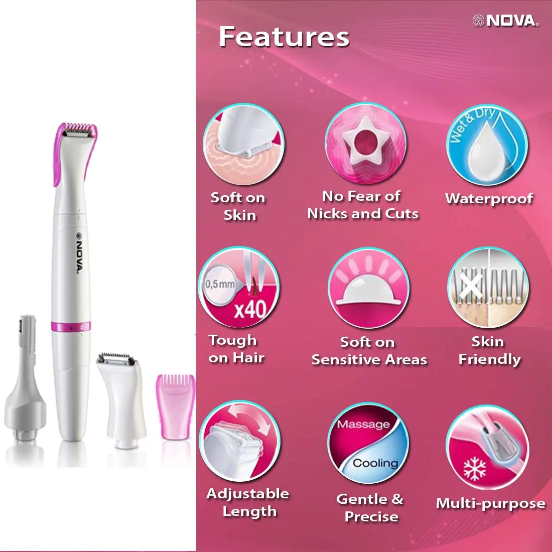 • Gentle hair removal for delicate areas