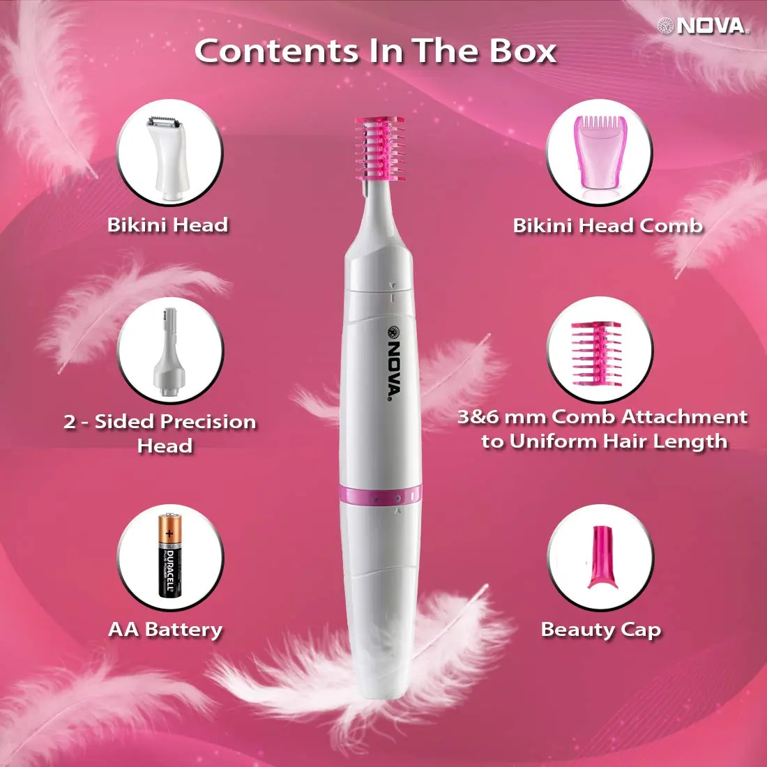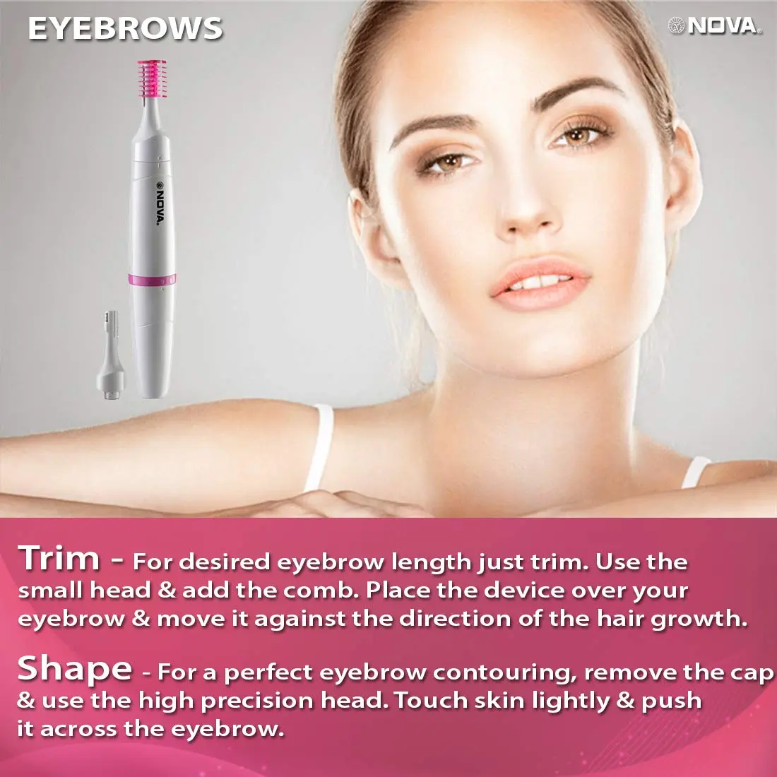 • Precise shaping for eyebrows, upper lip, and sideburns