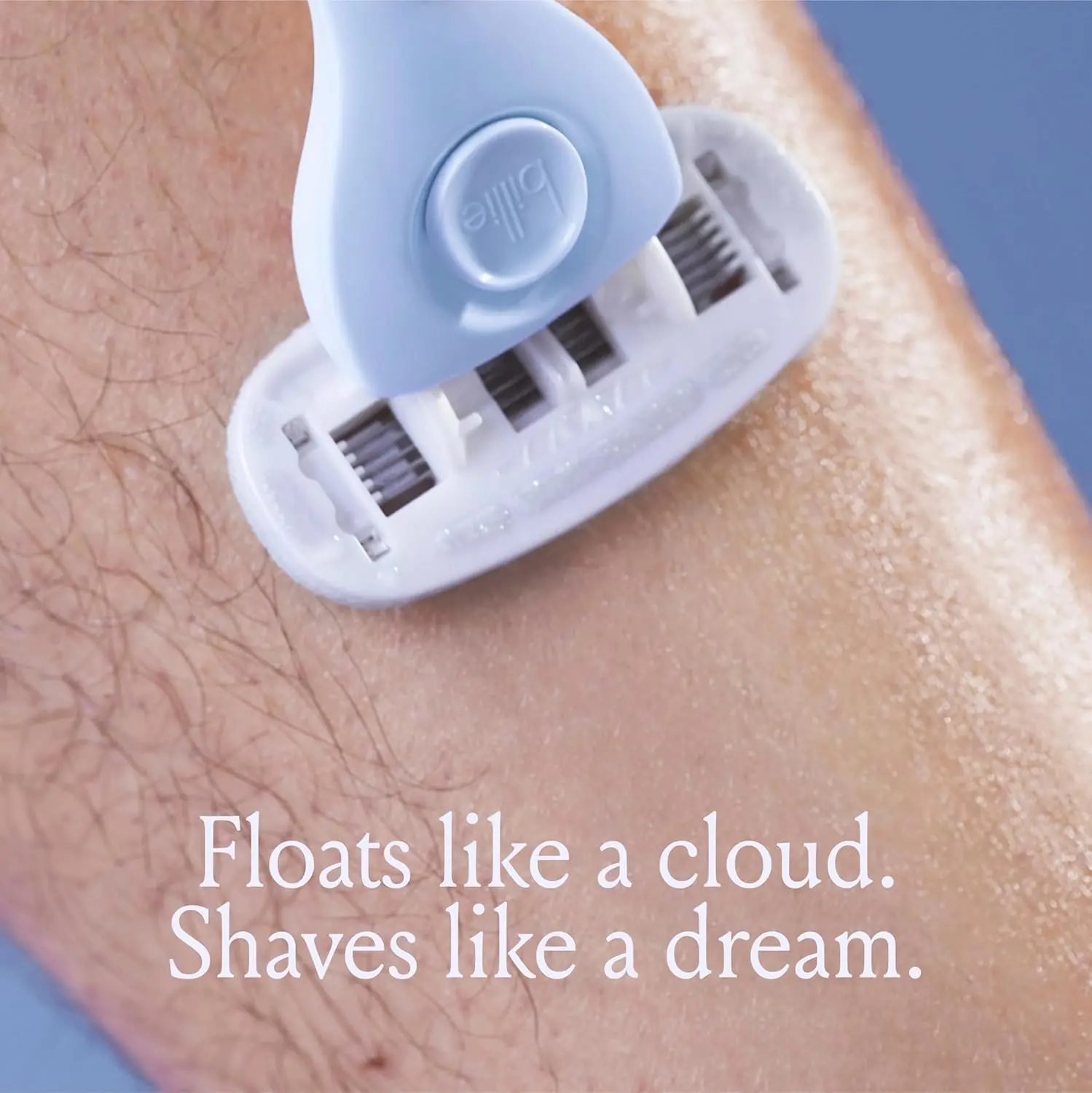 Experience a smoother, more comfortable shave with the Billie Razor Kit for Women. This all-in-one kit includes a non-slip ergonomic handle designed for ultimate control, four 5-blade razor refills engineered for a close and comfortable shave, and a signature magnetic holder to keep your razor dry and accessible in the shower. Our 5 nickel-free blades are super sharp and surrounded by soothing aloe shave soap, providing a gentle and effective shave even on sensitive skin. The ergonomic handle’s pivoting head effortlessly glides along your curves, ensuring a smooth shave every time. Say goodbye to cluttered shower shelves with the included magnetic holder, which keeps your razor securely on the wall and away from standing water. Dermatologist-approved and suitable for all skin types, the Billie Razor Kit offers a luxurious and irritation-free shaving experience. Elevate your shaving routine by pairing it with our Billie Whipped Shave Cream and Travel Case for the ultimate in smooth skin, wherever you go! Get ready for your best shave ever. The Billie Razor is designed for a close, comfortable and convenient shaving experience.