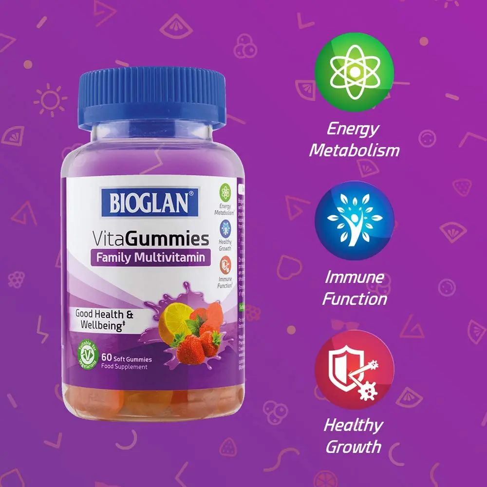 Give your family’s health a delicious boost with Bioglan Family Multivitamin VitaGummies! These specially formulated gummies are packed with 9 essential nutrients to help support optimal vitamin and mineral levels for the whole family. Forget struggling with pills or chalky tablets – our VitaGummies are a fun and convenient way to ensure everyone gets the vital nutrients they need. Support energy production, strengthen immunity, and promote healthy growth in children with each tasty gummy. And because they’re made with pectin instead of gelatin, our VitaGummies are vegetarian-friendly, making them a perfect choice for families with diverse dietary needs. Enjoy the delightful flavors of strawberry, raspberry, and lemon in every bottle! Say goodbye to vitamin time battles and hello to happy, healthy smiles. These chewable gummies are so easy to take – no water required! Bioglan Family Multivitamin Gummies provide a simple and enjoyable way to supplement your family’s diet and help them thrive.