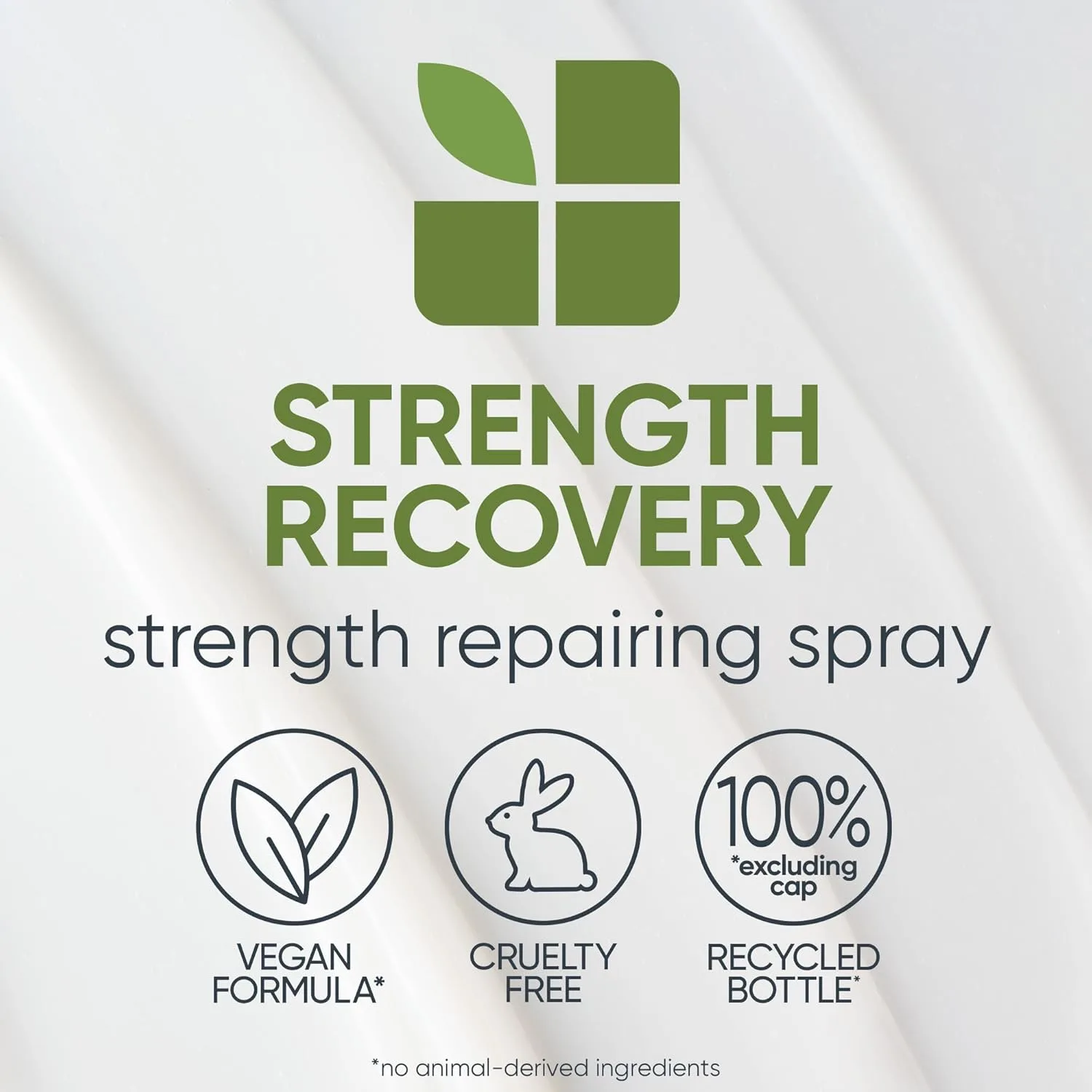 Revitalize and fortify your damaged, sensitized hair with the BIOLAGE Strength Recovery Leave-In Spray. This innovative treatment is designed to restore and protect your hair, combating future breakage and promoting overall hair health. This leave-in conditioner provides essential nourishment and restorative properties, transforming weak, brittle strands into stronger, healthier, and more resilient hair. Experience the joy of soft, shiny, and manageable hair with this powerful leave-in treatment. Unlike heavy, greasy formulas, this lightweight spray absorbs quickly, leaving your hair feeling weightless and refreshed. It works by targeting damaged areas, helping to rebuild the hair’s natural protein structure and improve its elasticity. Whether your hair is damaged from heat styling, chemical treatments, or environmental factors, the Strength Recovery Leave-In Spray can help restore its vitality and shine. Plus, you can feel good about using a product that’s both effective and ethical. This leave-in spray is vegan, cruelty-free, and comes in a 100% recycled bottle, making it a sustainable choice for your hair care routine. If you loved Fiber Strong or Keratin Dose, you’ll love the new Strength Recovery line, designed to repair all types of damaged hair. For best results, incorporate the full Strength Recovery regimen into your hair care routine. Use the Shampoo and Conditioning Cream to cleanse and condition your hair, then follow with the Leave-In Spray to lock in moisture and provide ongoing protection. With consistent use, you’ll notice a significant improvement in your hair’s strength, manageability, and overall health. The Strength Recovery system delivers stronger, healthier hair free of damage, and provides 82% more manageability, making styling a breeze.