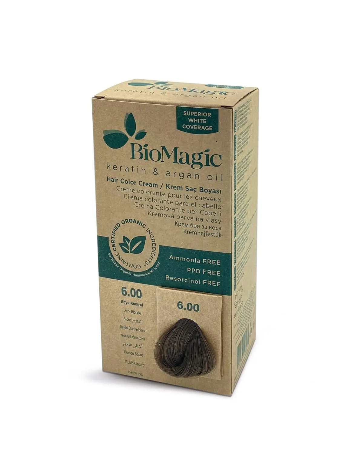 Transform your hair with Biomagic Permanent Hair Dye. Achieve a stunning 6/00 Dark Blonde shade with a chemical-free formula. Enjoy long-lasting, vibrant color in a convenient 60ml tube.