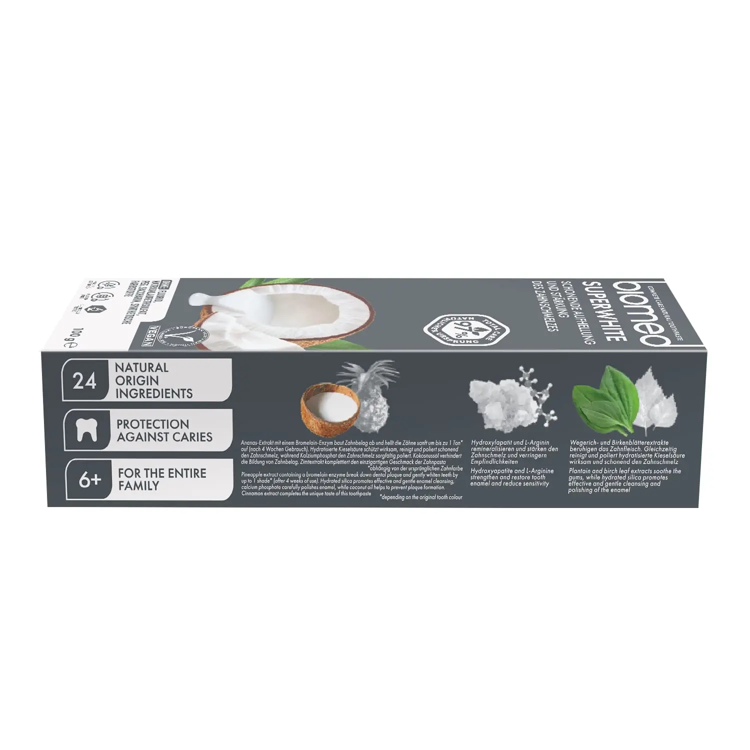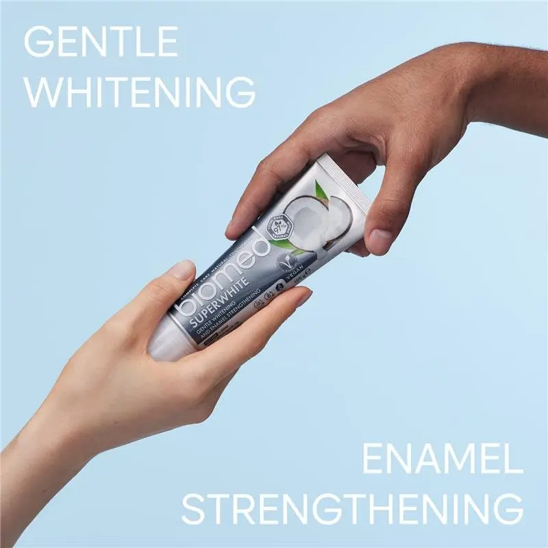 Experience a naturally brighter smile with Biomed Coconut Whitening Toothpaste, specially formulated for sensitive teeth. This fluoride-free toothpaste gently removes dental plaque and polishes enamel without harsh chemicals. Enriched with vitamins E, K, and PP, along with carotin, it nourishes your gums and supports overall oral health. Natural antiseptics provide a gentle whitening effect, perfect for those with sensitive tooth enamel. Embrace a healthier, whiter smile with the power of nature! This toothpaste is designed to be gentle yet effective, providing a refreshing clean without irritation. The coconut flavor adds a pleasant touch to your daily oral hygiene routine. Choose Biomed for a natural approach to teeth whitening and care. Its unique formula helps protect your teeth and gums while promoting a brighter, healthier smile. Perfect for daily use, this toothpaste will become an essential part of your oral care regime. Say goodbye to harsh chemicals and hello to a naturally radiant smile with Biomed Coconut Whitening Toothpaste.
