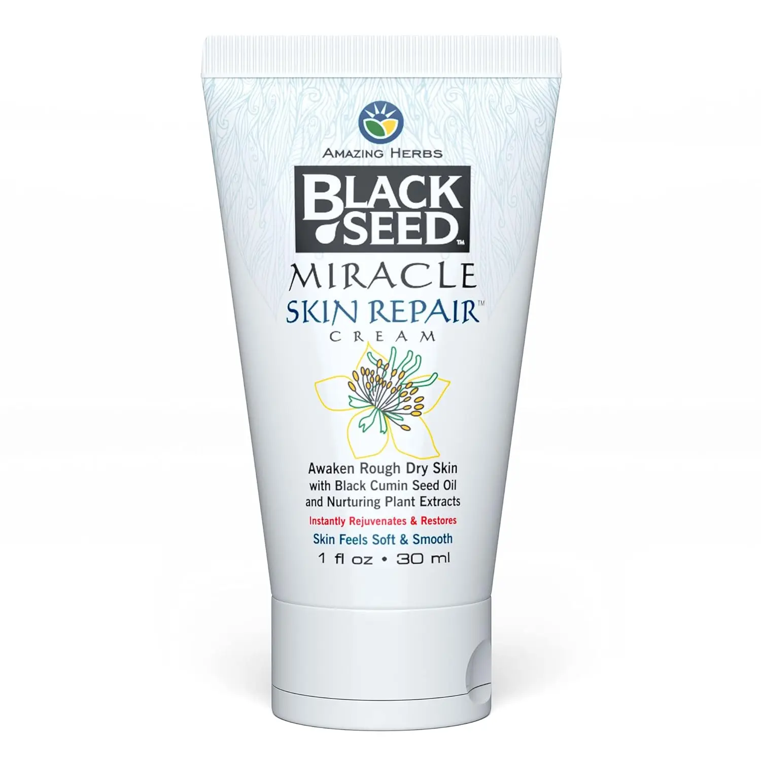 Discover the transformative power of Amazing Herbs Black Seed Miracle Cream! This meticulously crafted formula combines highly researched natural ingredients to restore skin integrity, ease dryness, and promote overall skin health and wellness. Packed with potent antioxidant Black Cumin Seed Oil, Vitamin E, and other essential oils, our miracle cream nourishes skin cells and supports collagen and elastin production. Repair skin damage with natural antioxidant agents that prevent cracking and roughness, leaving your skin feeling smooth, supple, and revitalized. We believe in the power of nature, which is why our formula is free of synthetic or artificial chemicals and carefully crafted to eliminate harmful and skin-sensitive allergens. Trust Amazing Herbs, the original manufacturers of Black Seed health and nutritional supplements in the world and one of the first nutraceutical companies to introduce it to the Health & Nutrition Industry in the US, to provide you with the highest quality natural skincare solutions. Experience the Amazing Herbs difference and unlock your skin’s natural radiance. This cream helps to visibly diminish the appearance of fine lines and wrinkles, promoting a more youthful complexion. It also provides deep hydration, leaving your skin feeling soft, smooth, and radiant. Suitable for all skin types, this cream is a must-have addition to your daily skincare routine.