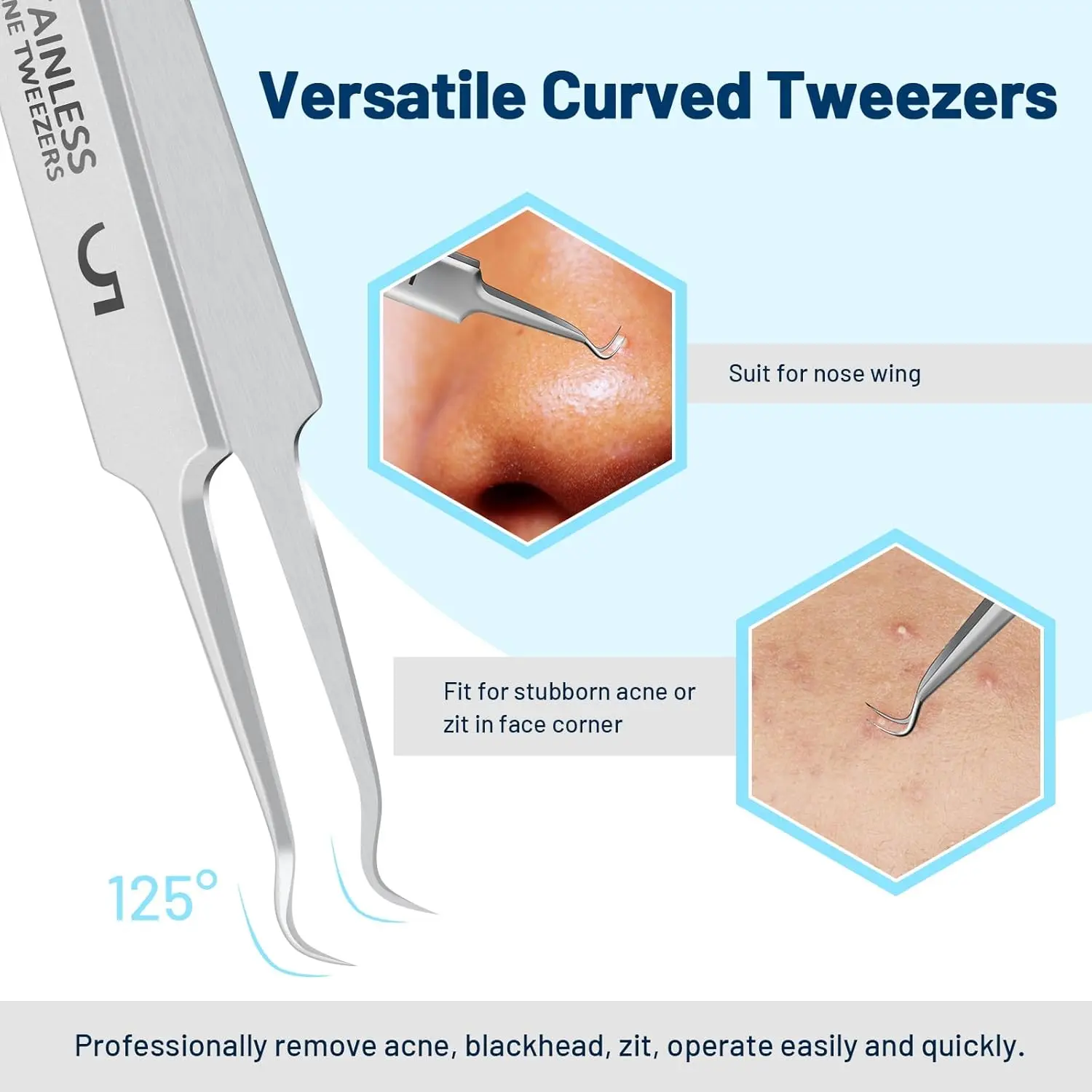• Pointed tip straight tweezers for mature acne
