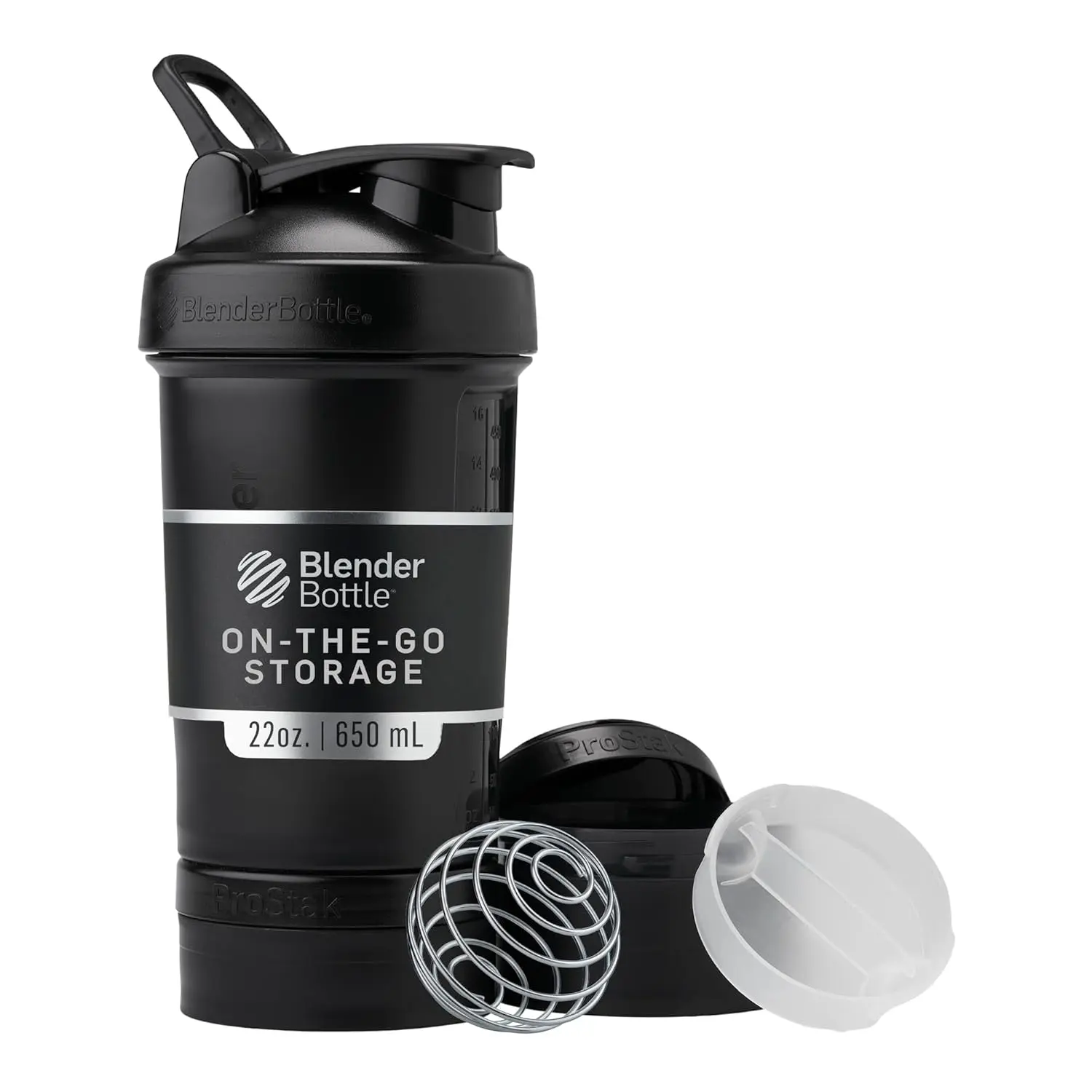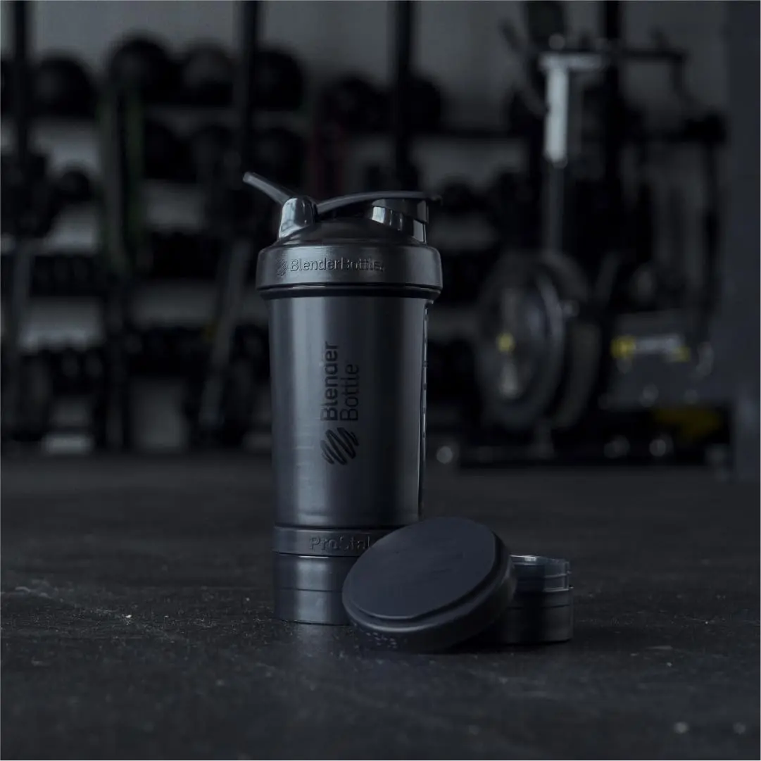 Inside the BlenderBottle ProStak, you’ll find a patented BlenderBall whisk, engineered to deliver smooth and perfectly blended shakes every time. No more clumps or lumps – just delicious, consistent protein drinks. The ProStak includes a 22-oz. BlenderBottle (with markings up to 16 oz.), a 150 cc jar for larger supplement doses or snacks, a 100 cc jar for smaller portions, and a convenient pill organizer to keep your vitamins and medications neatly sorted.