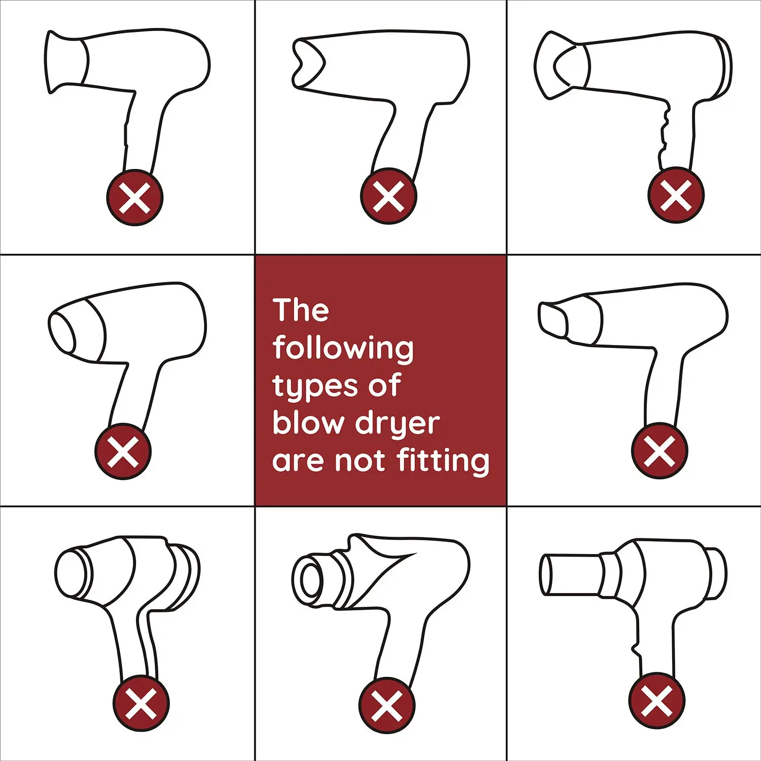 Crafted from heavy-duty, heat-resistant material, this attachment is built to last. It’s sturdily constructed to withstand daily use without breaking or bending, providing a reliable solution for your hairstyling needs. The rubber base offers great compatibility, fitting most blow dryers with a nozzle size of 1.57~1.97 inches (4-5cm). Simply push the attachment onto your blow dryer nozzle for a snug and secure fit. (Please refer to the product images for compatible blow dryer models.)