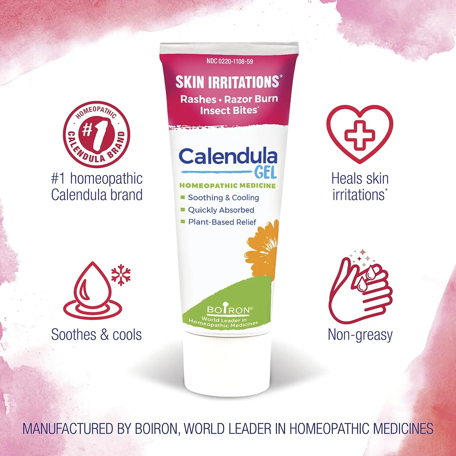 Boiron Calendula Gel provides soothing relief for minor skin irritations. This topical first aid treatment is made with Calendula officinalis, a medicinal plant traditionally used to heal skin. The clear, non-greasy gel absorbs quickly and is ideal for cuts, scrapes, burns, and insect bites. It promotes healing and helps to reduce inflammation, providing gentle and effective care for the whole family. Boiron Calendula Gel is free of artificial colors, perfumes, and parabens, making it a safe and natural choice for sensitive skin. Experience the healing power of Calendula with this convenient and easy-to-use gel. Its lightweight formula makes it perfect for on-the-go first aid, providing relief wherever you need it. Trust Boiron, a leader in homeopathic medicines, to provide a natural solution for your skin’s needs. The 2.6oz tube is perfect for keeping at home, in your car, or in your bag for any unexpected minor injuries that may arise. Calendula has long been recognized for its amazing benefits in skincare, and this product makes the most of its healing properties. Choose Boiron Calendula Gel for a natural and effective way to care for your skin.