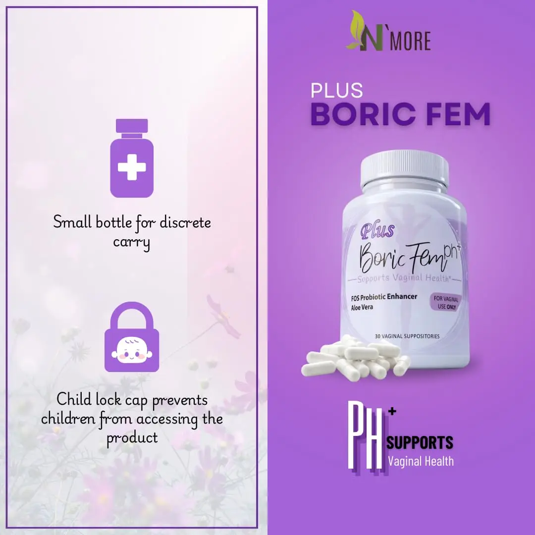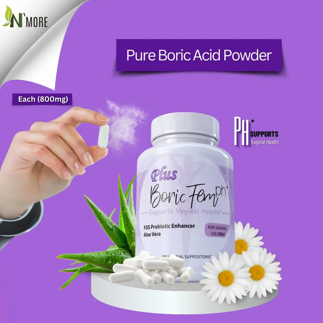 Discover soothing relief and promote a healthy vaginal environment with our Boric Acid Suppositories enhanced with Aloe Vera and FOS. These easy-to-insert veggie capsules deliver the benefits of boric acid, known for its ability to help maintain a normal vaginal pH balance. The addition of Aloe Vera provides a soothing sensation, helping to alleviate discomfort and irritation. FOS (Fructooligosaccharides) act as a prebiotic, potentially supporting the growth of beneficial vaginal flora and inhibiting the overgrowth of unwanted microorganisms like Candida cells. Our suppositories come in a small, discreet bottle, perfect for travel and everyday use. The child-resistant cap offers an extra layer of safety, preventing accidental ingestion by children. Each suppository is carefully formulated to ensure optimal effectiveness and comfort. If you’re looking for a natural way to support your vaginal health and address imbalances, these Boric Acid Suppositories with Aloe and FOS are an excellent choice.