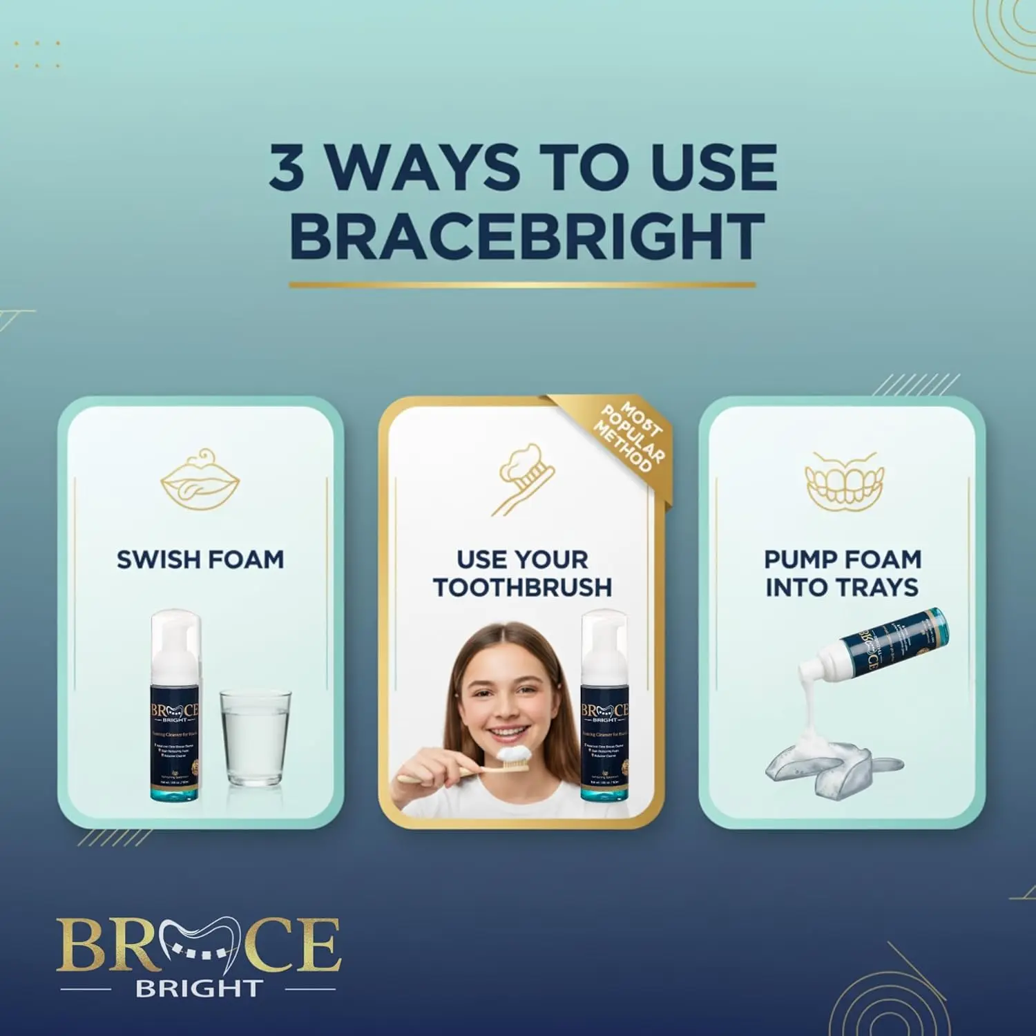 BraceBright is incredibly versatile with 3 easy ways to use it. It’s safe for metal and clear braces, retainers, and aligners. Whether you prefer to brush, rinse, or use it with trays, better oral hygiene is just moments away! Plus, its convenient on-the-go application makes it perfect for maintaining your oral health wherever you are. Experience the confidence of a clean, bright smile with BraceBright Foam!