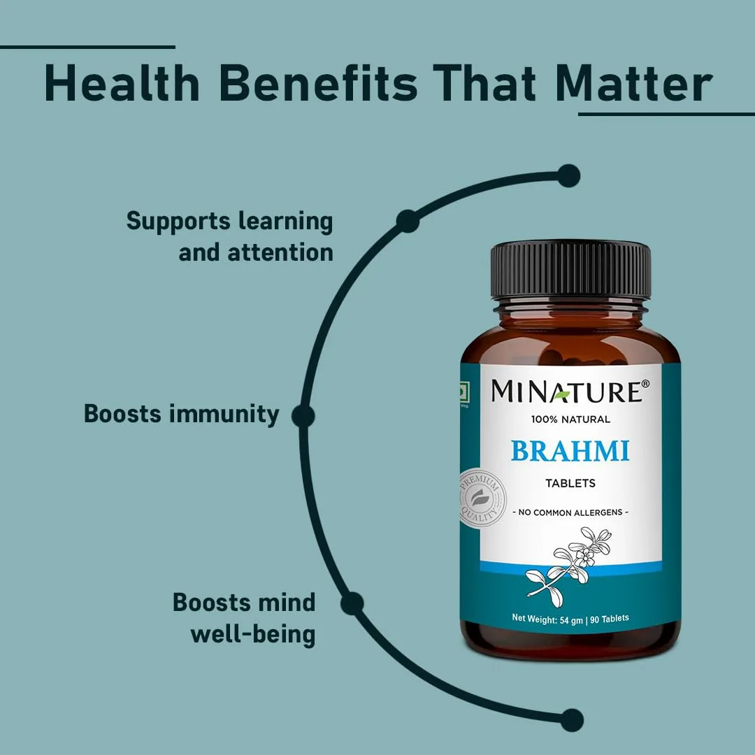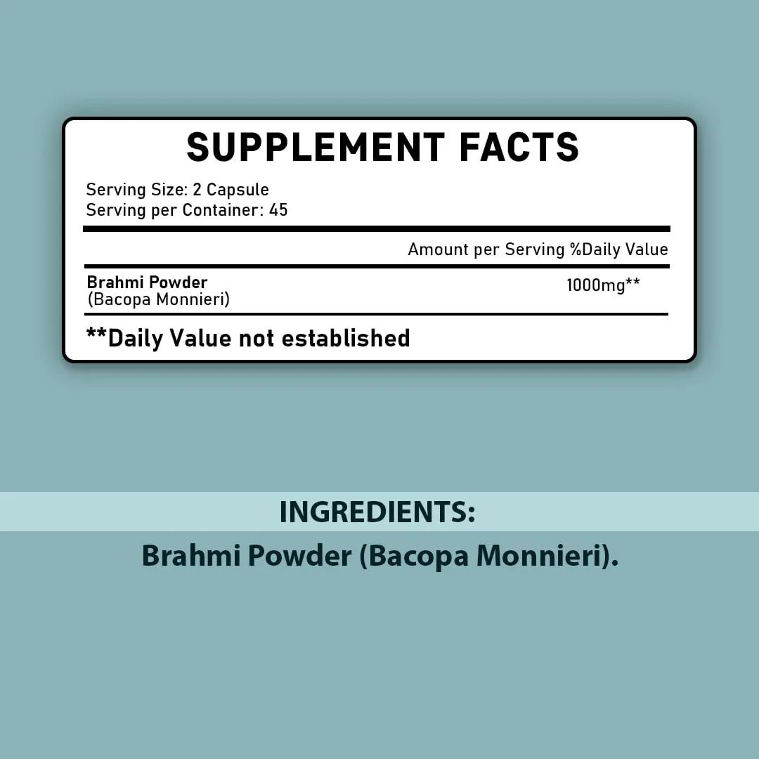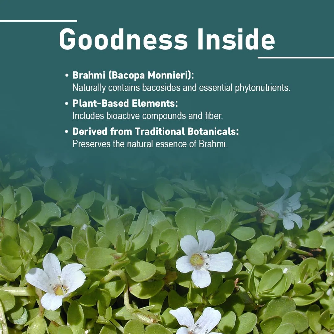 Unlock your cognitive potential with our Brahmi Tablets! These 100% natural tablets are formulated to enhance memory and focus, supporting overall brain health. Brahmi is known for its antioxidant properties, helping to protect against damage from free radicals and reduce inflammation. Studies suggest that Brahmi can boost memory, improve information processing speed, and increase learning rate. Beyond cognitive benefits, Brahmi also supports scalp rejuvenation and healthy hair regeneration through its antioxidant components. Our miniature Brahmi tablets are safe for everyone, being free from gluten, dairy, soy, and artificial ingredients. For optimal results, take 2 tablets per day, providing a 1000mg serving. Experience the natural power of Brahmi for a sharper mind and healthier body! These easy-to-swallow tablets can seamlessly integrate into your daily routine. Prioritize your brain health today!