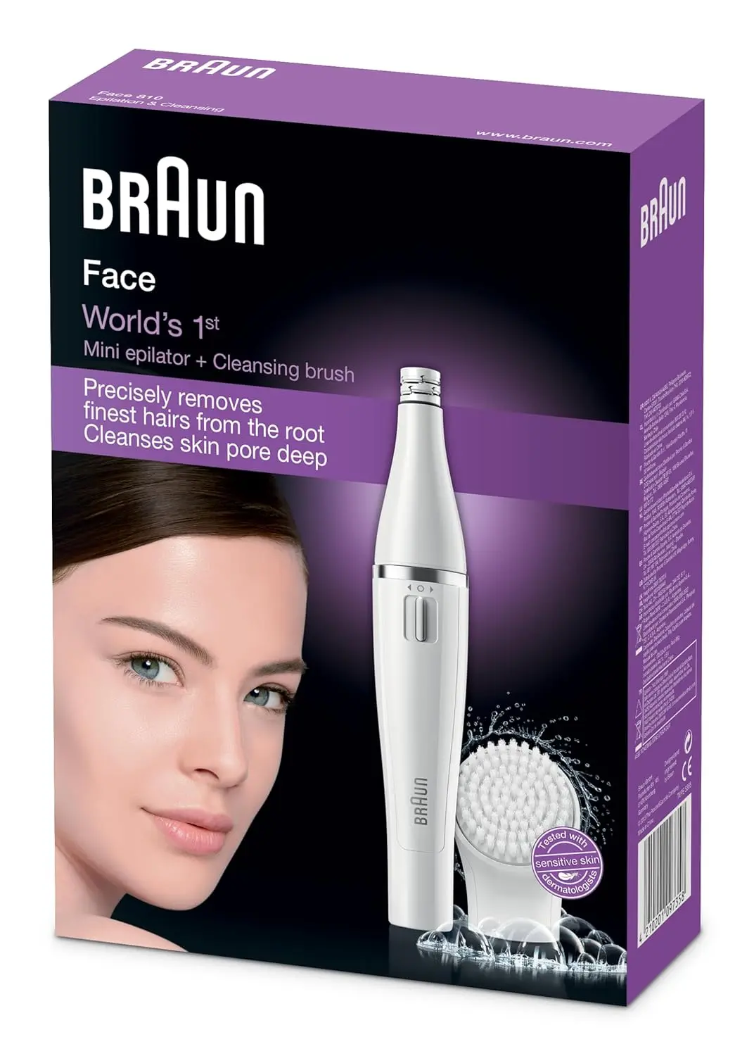 The Braun Facial Epilator & Cleansing Brush is the world’s first 2-in-1 system. The epilator removes hair 4x shorter than wax, while the brush deeply cleanses and exfoliates for radiant skin. An extra AA battery is included.