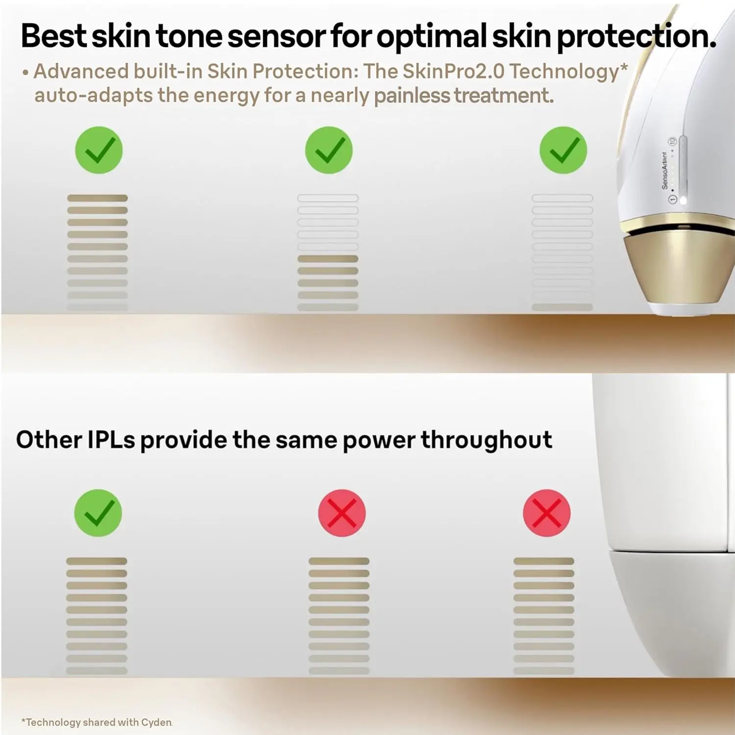 • Skin pro 2.0 technology automatically adapts to your skin tone.