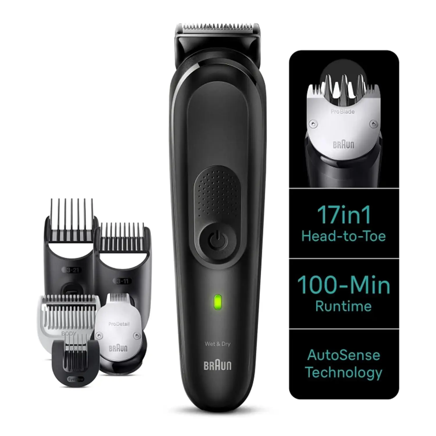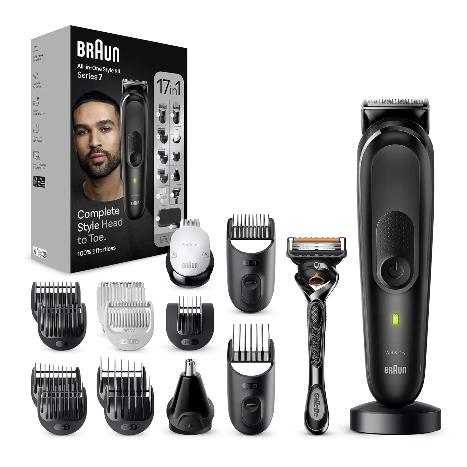 • 17-in-1 grooming kit for head-to-toe grooming.