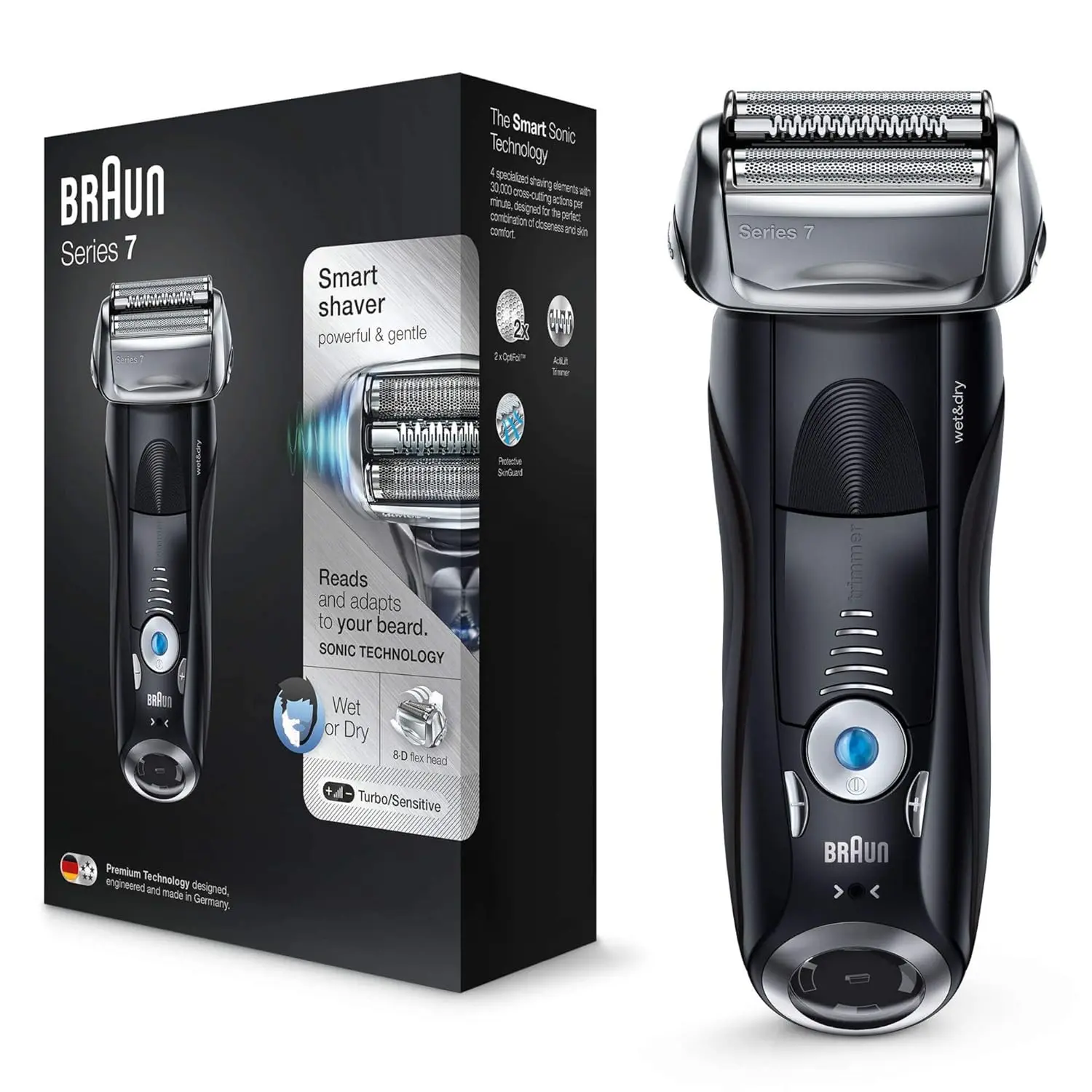 Versatility is key, and the Series 7 is designed for both wet and dry use. Use it dry for a quick and convenient shave, or with water, foam, or gel for enhanced gliding and a smoother, more comfortable experience. The shaver is 100% waterproof, making it safe to use in the shower and easy to clean under running water.