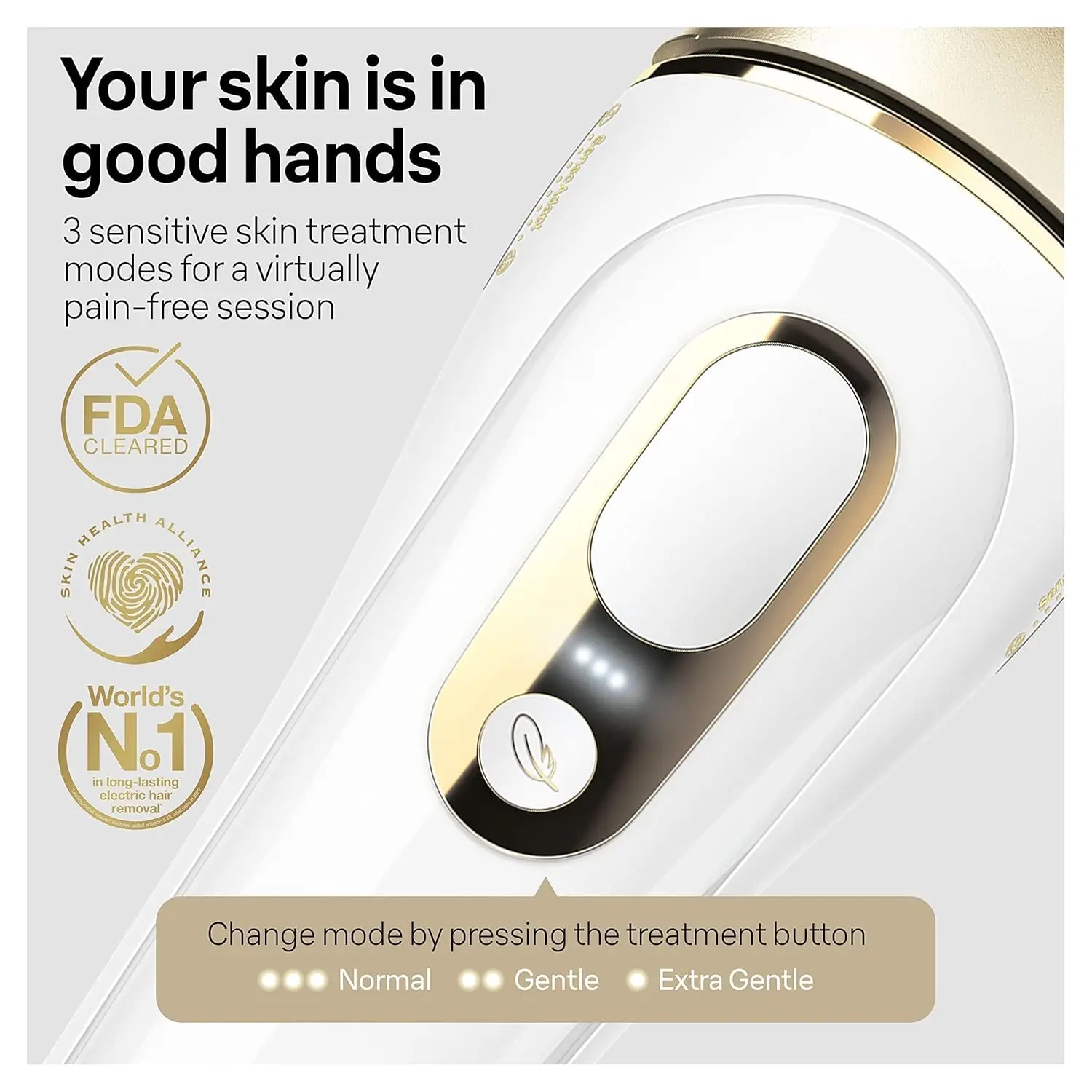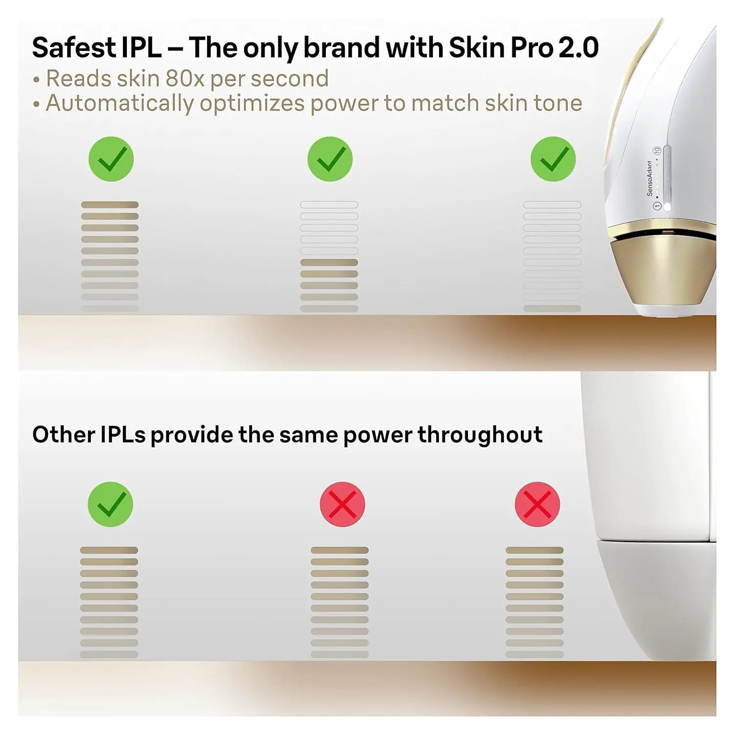 • Smart IPL with SensoAdapt™ skin sensor and UV protection.
