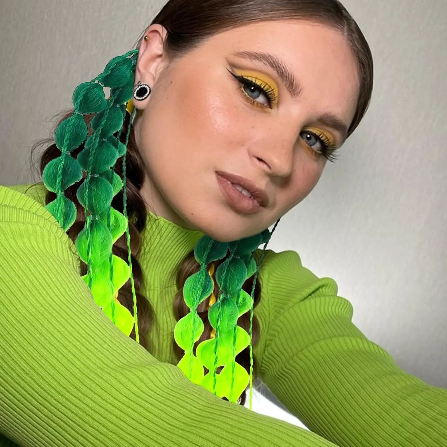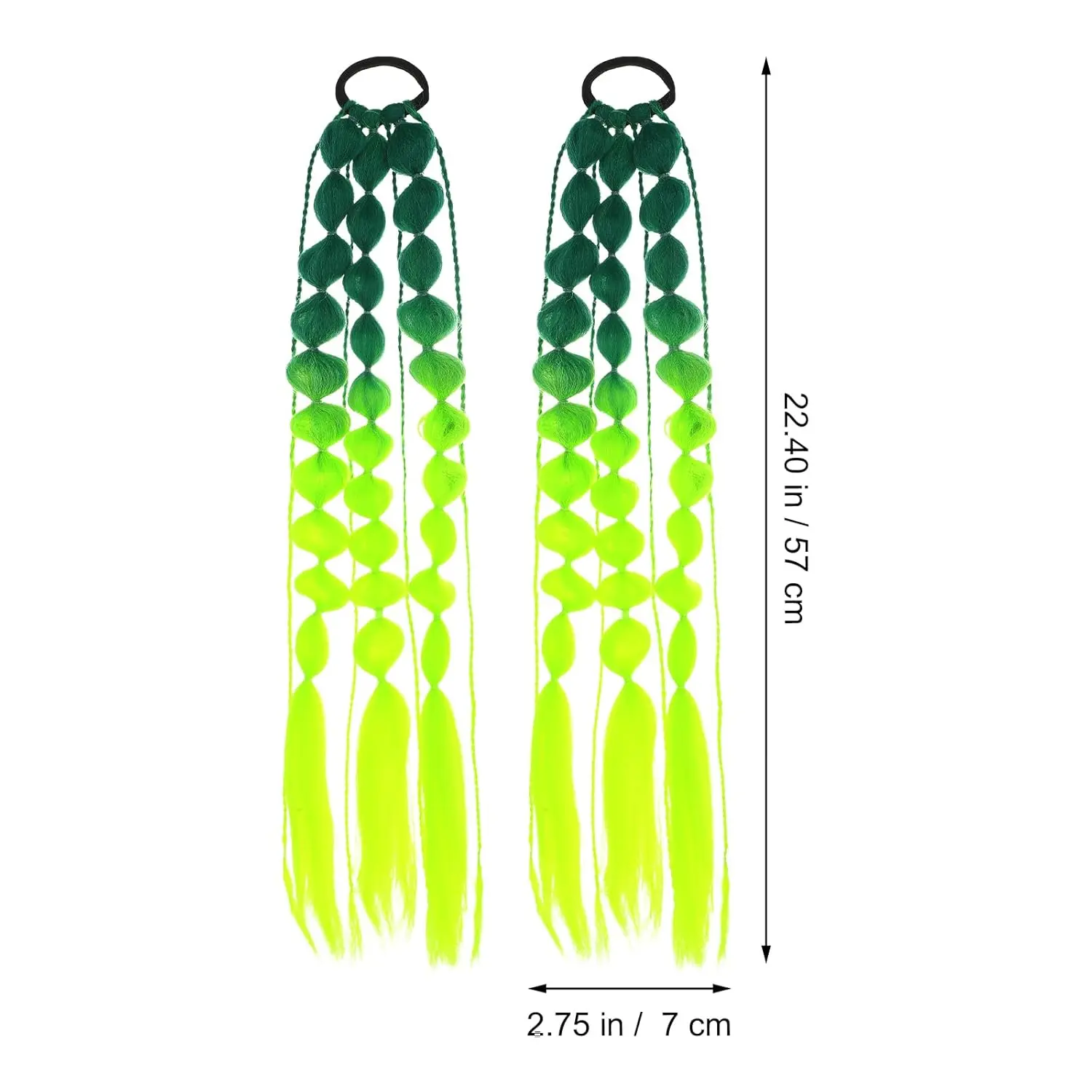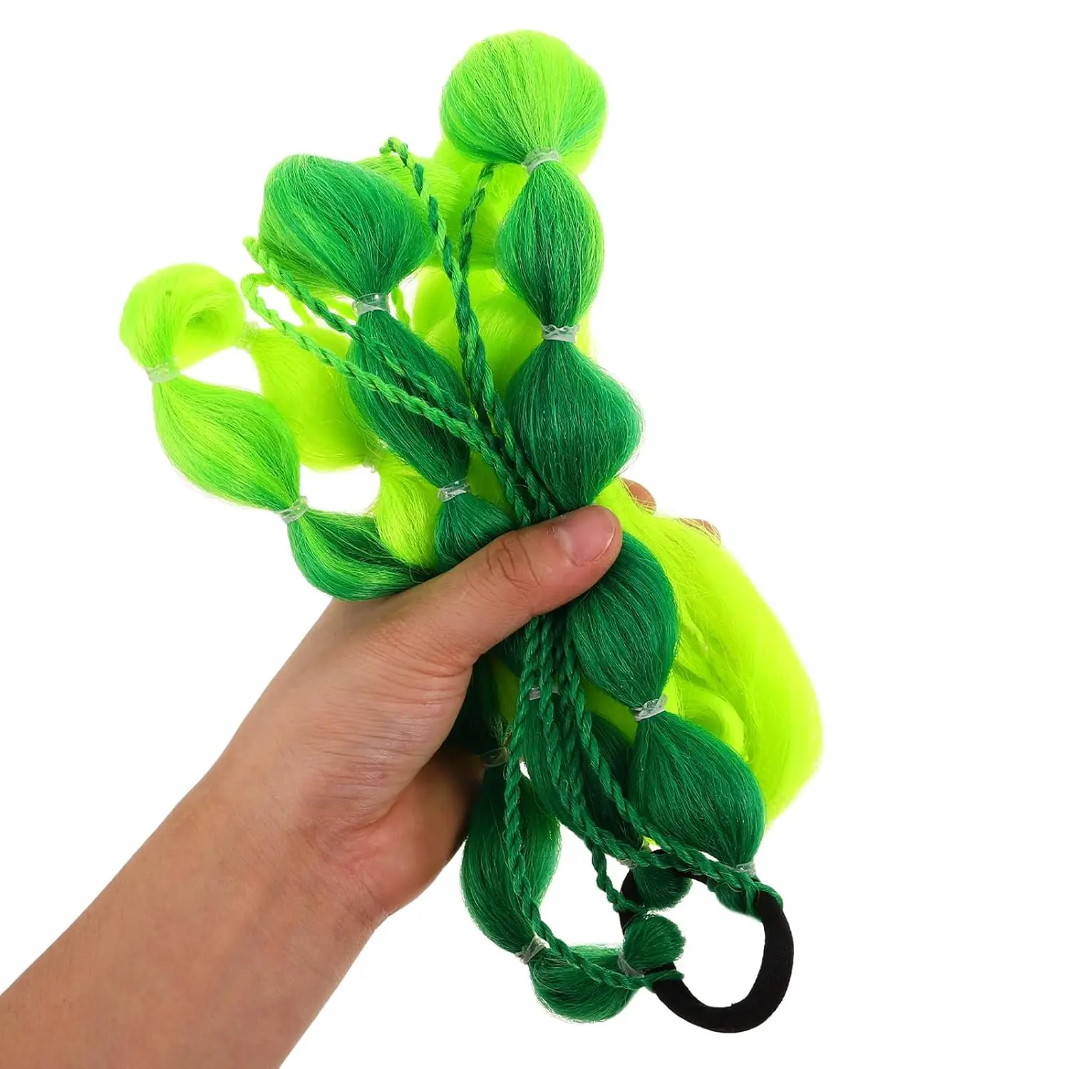Unleash your inner rave queen with our vibrant Bubble Braids Hair Extensions! These eye-catching green hair extensions are the perfect accessory to elevate your festival look, add a pop of color to crazy hair day, or make a bold statement at any party. Each colored hair extension is meticulously handwoven by skilled artisans, guaranteeing exceptional durability and long-lasting wear. The easy-to-use clip design ensures a seamless installation, allowing you to transform your style in seconds. Featuring a stunning gradient color design, these rainbow hair extensions are not just stylish but also designed to make you stand out from the crowd. Ideal for anyone seeking vibrant and unique hair accessories, these bubble braid hair extensions are the ultimate choice. Whether you’re attending a music festival, celebrating crazy hair day at school, or simply want to express your individuality, these extensions will ensure you’re always the center of attention. They’re versatile, fun, and perfect for girls and adults alike. Get ready to turn heads and make a lasting impression with our exceptional rave hair extensions!