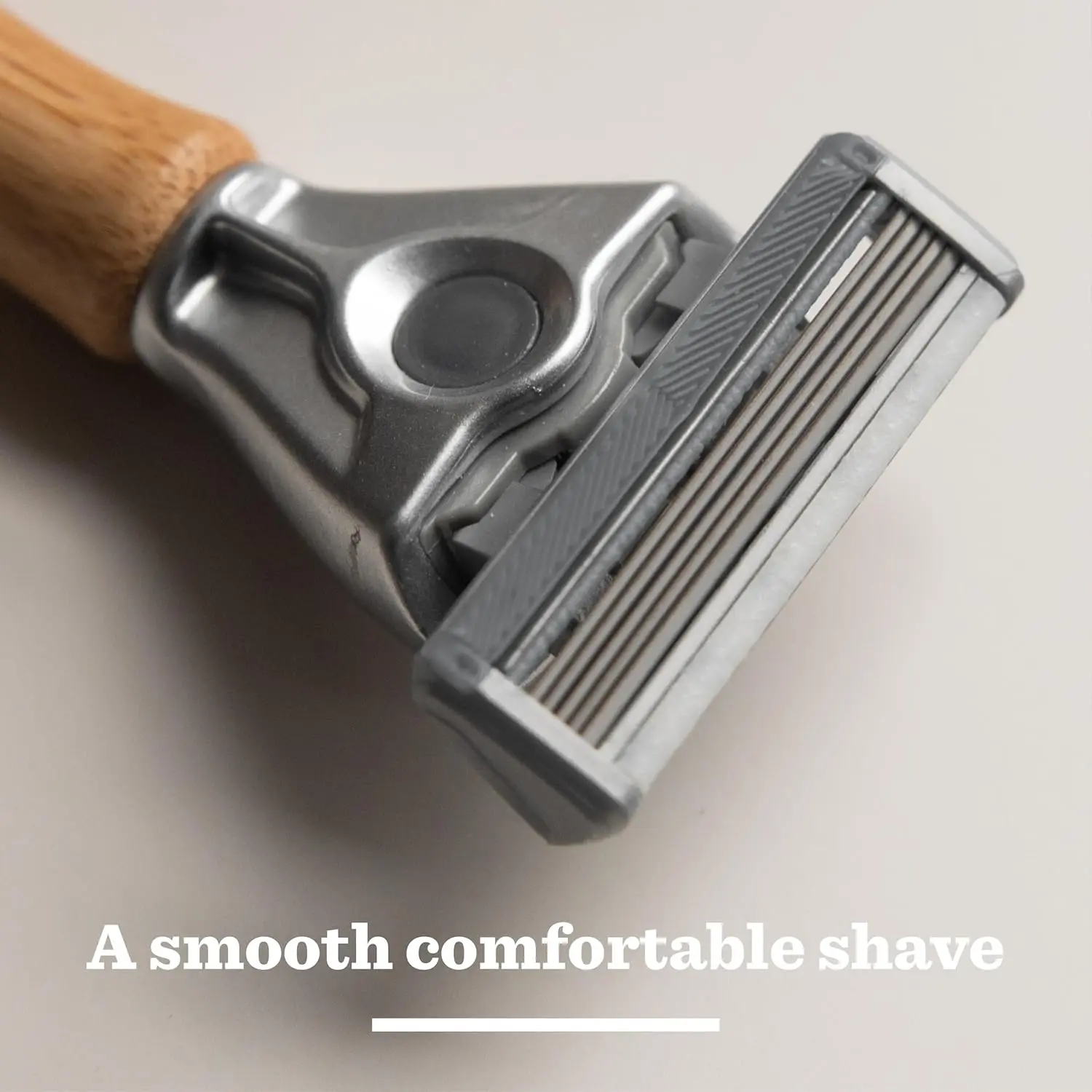 Keep your Bulldog Original Bamboo Razor performing at its best with this convenient pack of four replacement blades. Each blade head is meticulously crafted to deliver a smooth, clean shave every time. Featuring five tempered steel blades, these cartridges offer exceptional sharpness and durability, ensuring a close and comfortable shave. The integrated precision trimmer is perfect for tackling hard-to-reach areas and refining your facial hair with accuracy. A lubricating strip enriched with Aloe Vera soothes the skin, minimizing irritation and maximizing comfort. The pivoting design of the blade head effortlessly adapts to the contours of your face, providing optimal contact and minimizing the risk of nicks and cuts. With these replacement blades, you can continue to enjoy the sustainable and effective shaving experience that Bulldog razors are known for. This pack offers great value and ensures you’re always prepared for a fresh, clean shave. Made with un-chromed metal components and packaged in fully recycled stock, these blades align with Bulldog’s commitment to environmentally conscious grooming. Experience the perfect combination of performance and sustainability with Bulldog replacement blades.