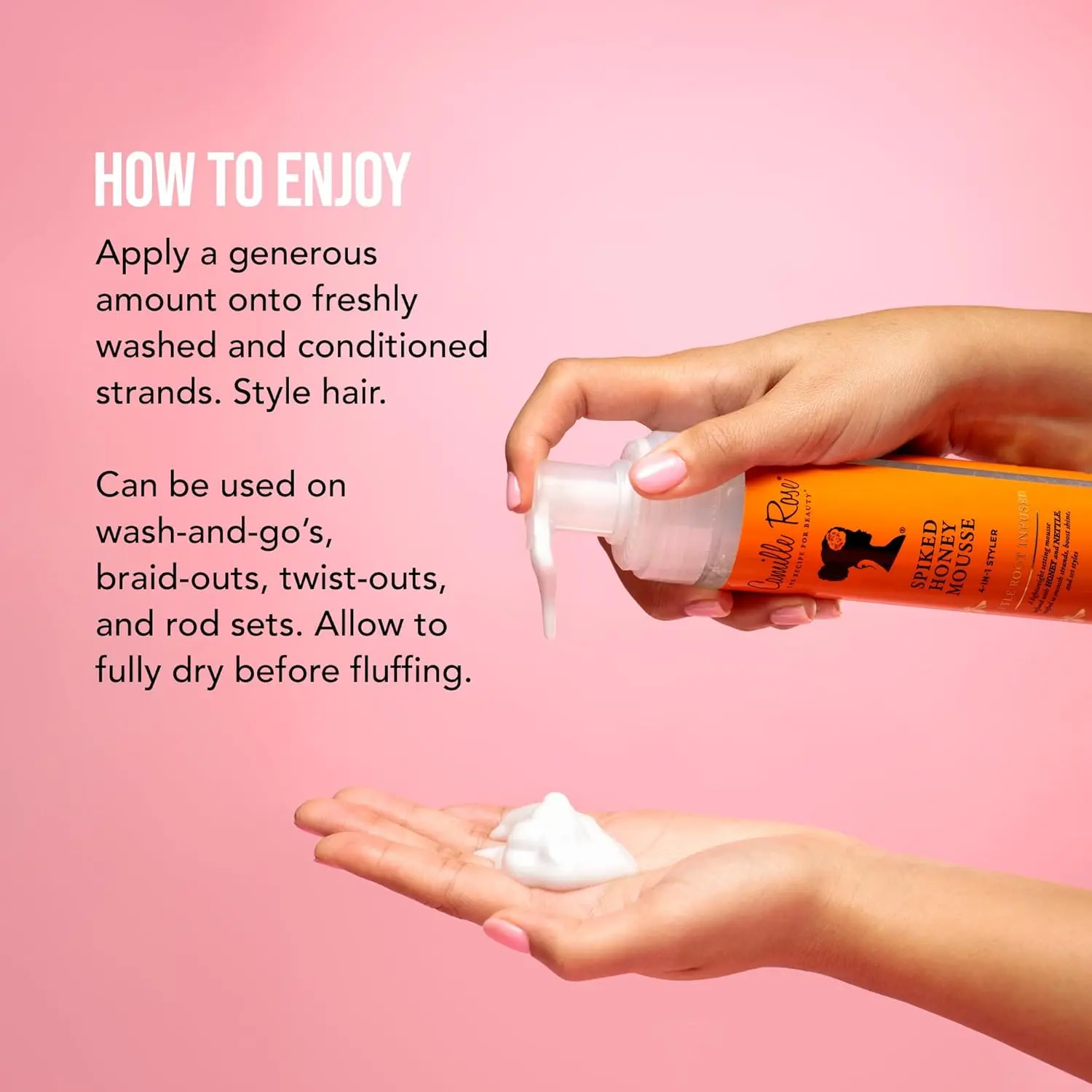 Achieve beautifully defined and hydrated hair with Camille Rose Honey Mousse. This lightweight setting mousse is expertly crafted with hydrating honey, known for its softening and smoothing properties. Say goodbye to dry, brittle strands and hello to long-lasting definition that holds your style without feeling stiff or sticky. Infused with nourishing nettle root, this mousse not only styles but also promotes healthy hair growth and delivers incredible shine. Nettle root is a powerhouse ingredient that strengthens hair from the root, leaving it looking vibrant and full of life. Whether you’re setting braids, twists, bantu knots, or simply styling your natural curls, this versatile mousse provides the perfect balance of moisture and hold.