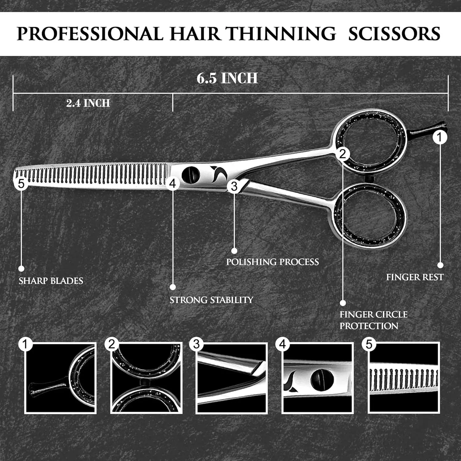 Achieve professional-quality haircuts at home with Candure Thinning Scissors! These premium hairdressing scissors are designed for both professionals and home users, providing a comfortable and efficient way to remove unwanted volume and blend layers seamlessly. Crafted from high-quality, corrosion-resistant stainless steel, these thinning shears offer exceptional durability and sharpness, ensuring a clean and precise cut every time, even after repeated use. Say goodbye to split ends and dullness! Candure Thinning Scissors are designed to remove weight without damaging the hair shaft, leaving you with a healthy and stylish look. The ergonomic design ensures a comfortable grip, making them easy to handle for extended use. Whether you’re trimming your own hair, styling a beard, or even grooming your pets (dogs and cats!), these versatile scissors are up to the task. They are suitable for both men and women and make a thoughtful gift for your loved ones on any special occasion. These thinning shears are more than just a tool; they’re an investment in your personal grooming and style. Experience the difference that quality makes and elevate your haircutting skills with Candure Thinning Scissors. Get ready to achieve salon-worthy results from the comfort of your own home! These scissors are built to last, meaning you will have a quality tool that serves for years to come. The scissors are also very comfortable to use for long periods of time making them a great choice for professional use.