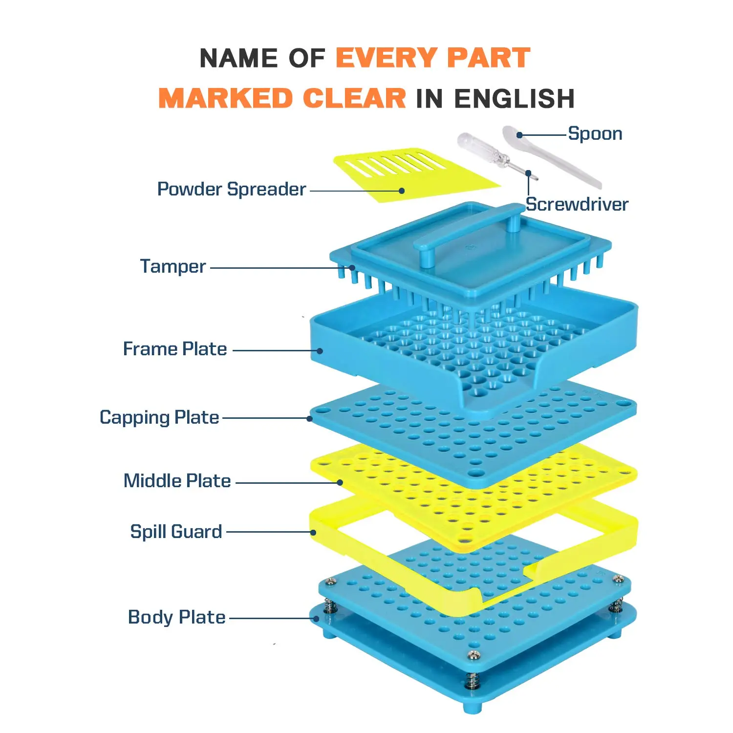 This versatile machine is ideal for encapsulating a wide range of supplements, including vitamins, essential oils (please note that some essential oils may dissolve capsules), herbal powders, and other powdered supplements. Take control of your health and wellness by creating your own customized supplement blends.